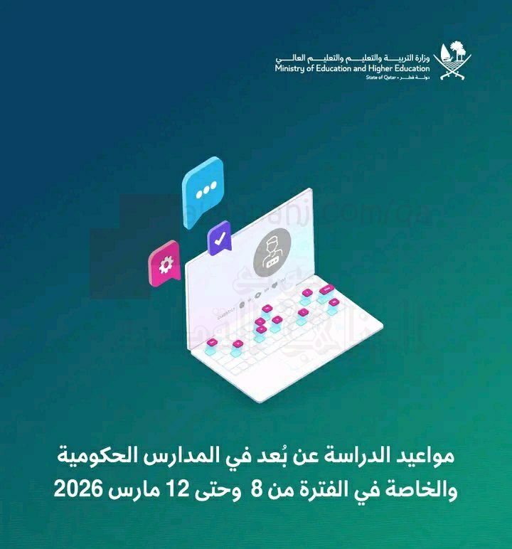 تعديل مواعيد الدراسة عن بعد في المدارس الحكومية والخاصة في الفترة من 8 وحتى 12 مارس 2026, أخبار, الدوام, الفصل الثاني, 2025-2026 | ||