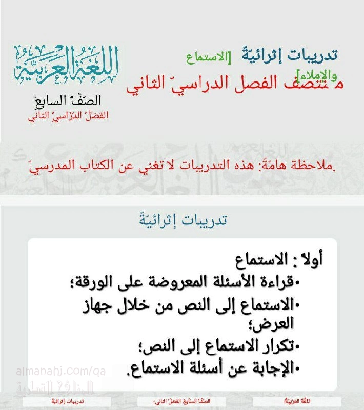 | أنت هنا: موقع المناهج ⇦ المناهج القطرية ⇦ الصف السابع ⇦ لغة عربية ⇦ الفصل الثاني ⇦ أوراق عمل |