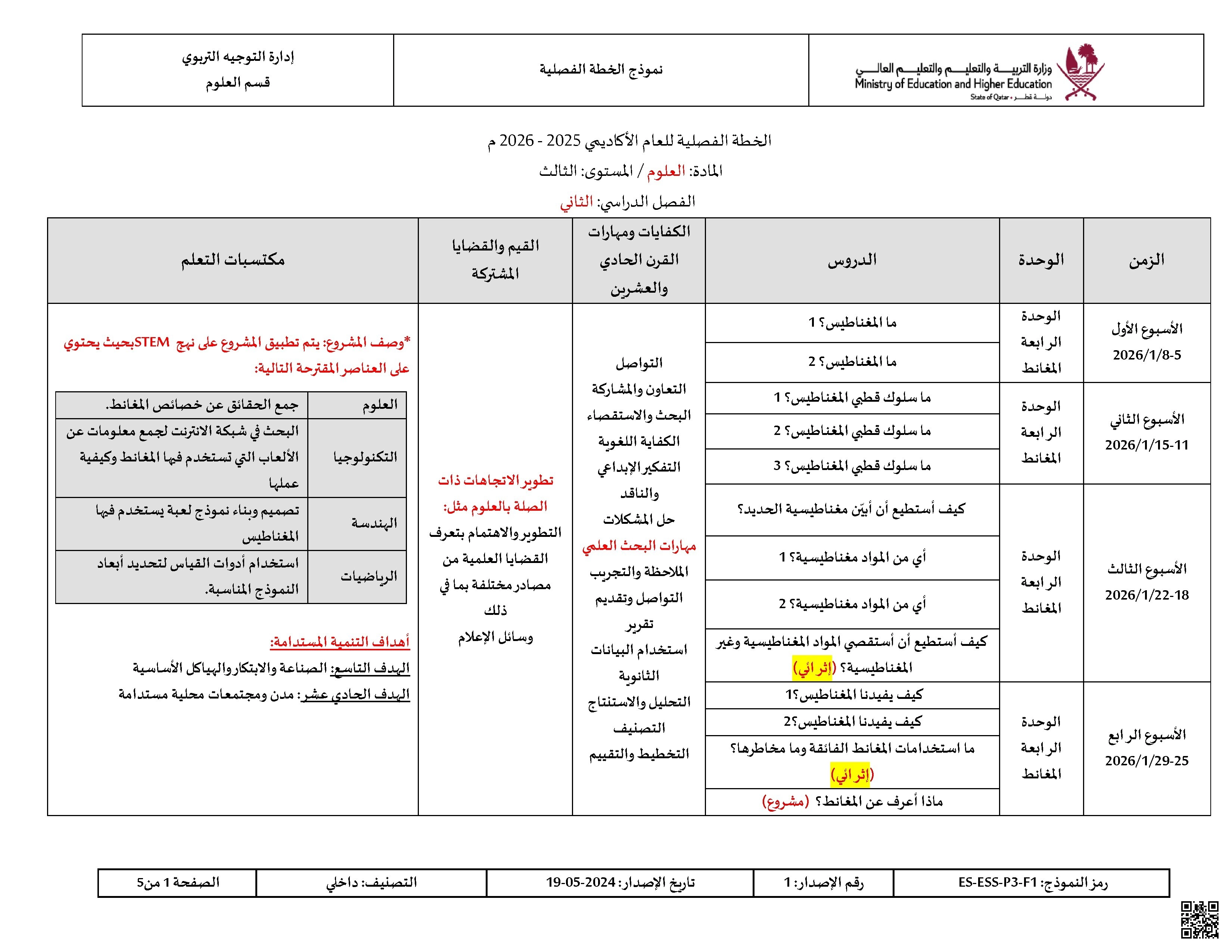 الخطة الفصلية المعدلة للفصل الثاني