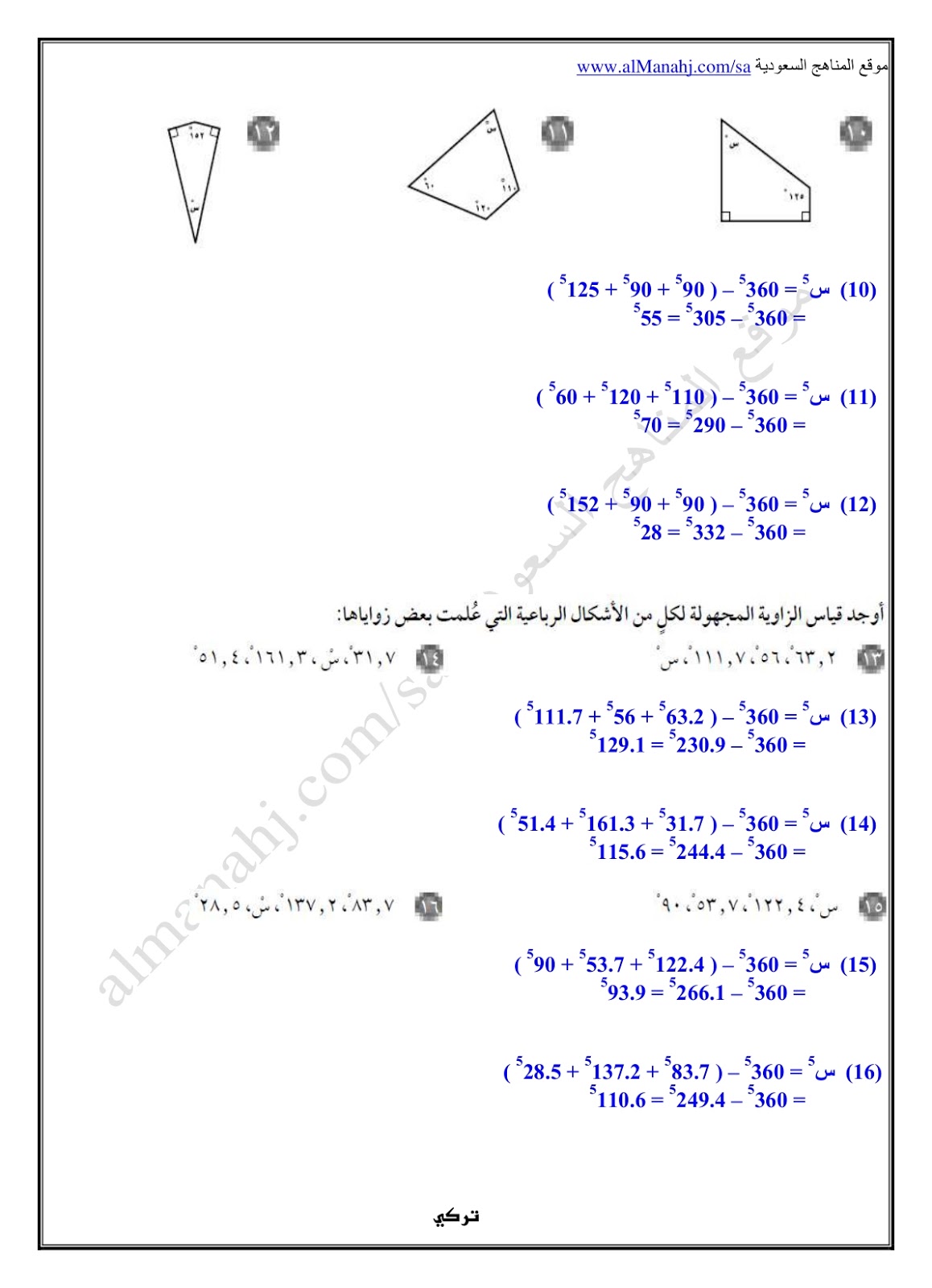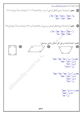 حل كتاب النشاط لدرس الأشكال الرباعية في  مادة الرياضيات للصف الأول المتوسط وفق المنهج السعودي