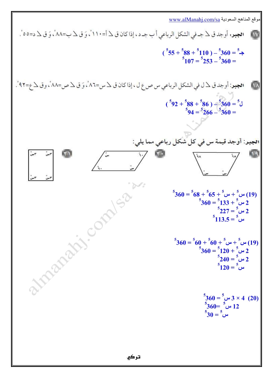 حل كتاب النشاط لدرس الأشكال الرباعية, الصف الأول المتوسط, رياضيات, الفصل الثاني, 2018-2019 - المناهج السعودية