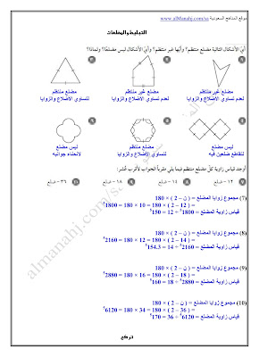 حل كتاب النشاط لدرس التبليط و المضلعات في  مادة الرياضيات للصف الأول المتوسط وفق المنهج السعودي