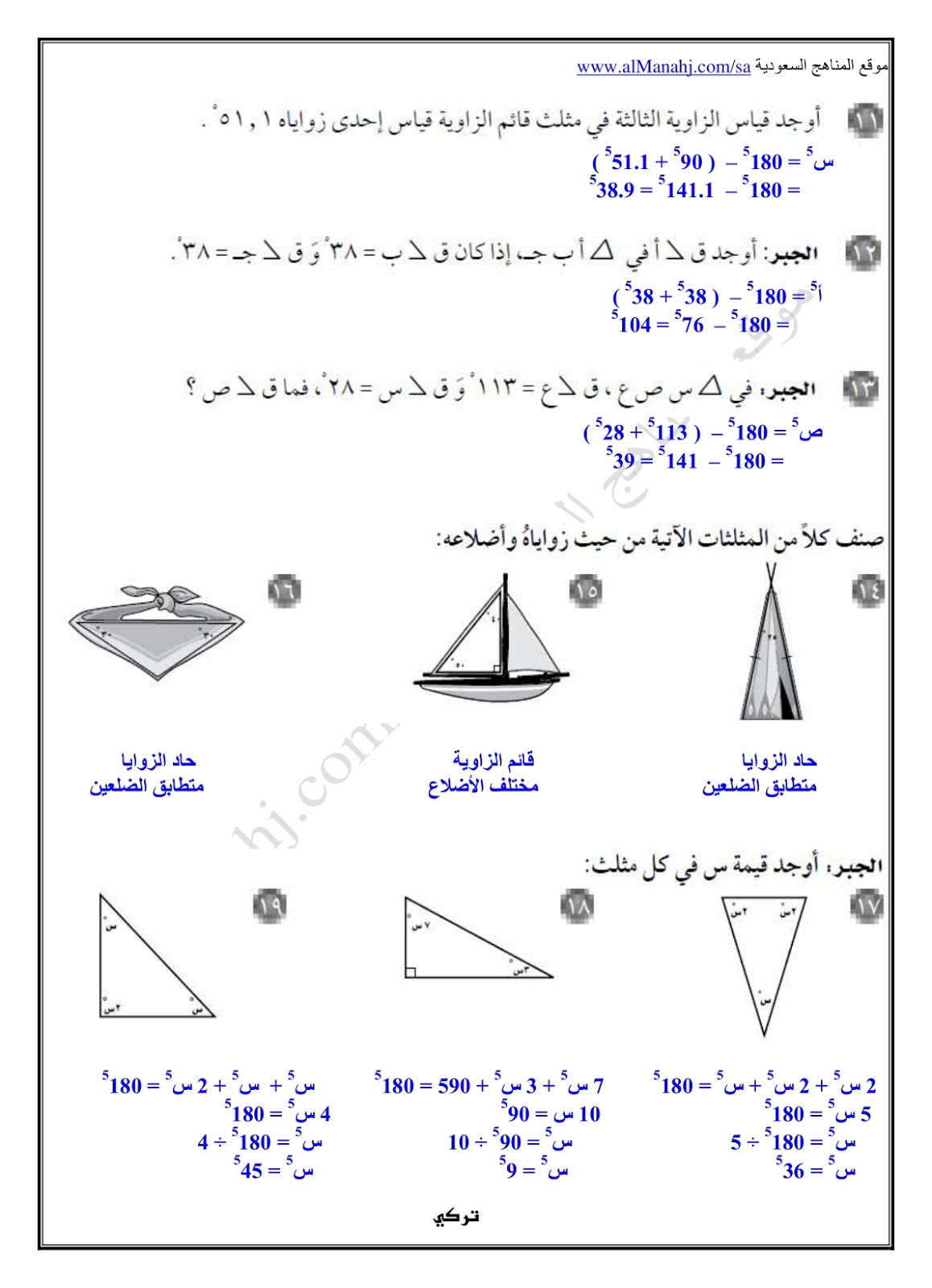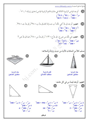 حل كتاب النشاط لدرس المثلثات في  مادة الرياضيات للصف الأول المتوسط وفق المنهج السعودي