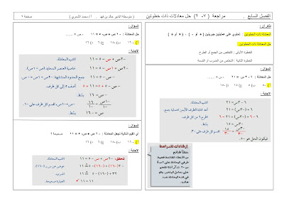مراجعة للفصل السابع من كتاب الرياضيات للصف الثاني المتوسط في ملف واحد وفق المنهج السعودي