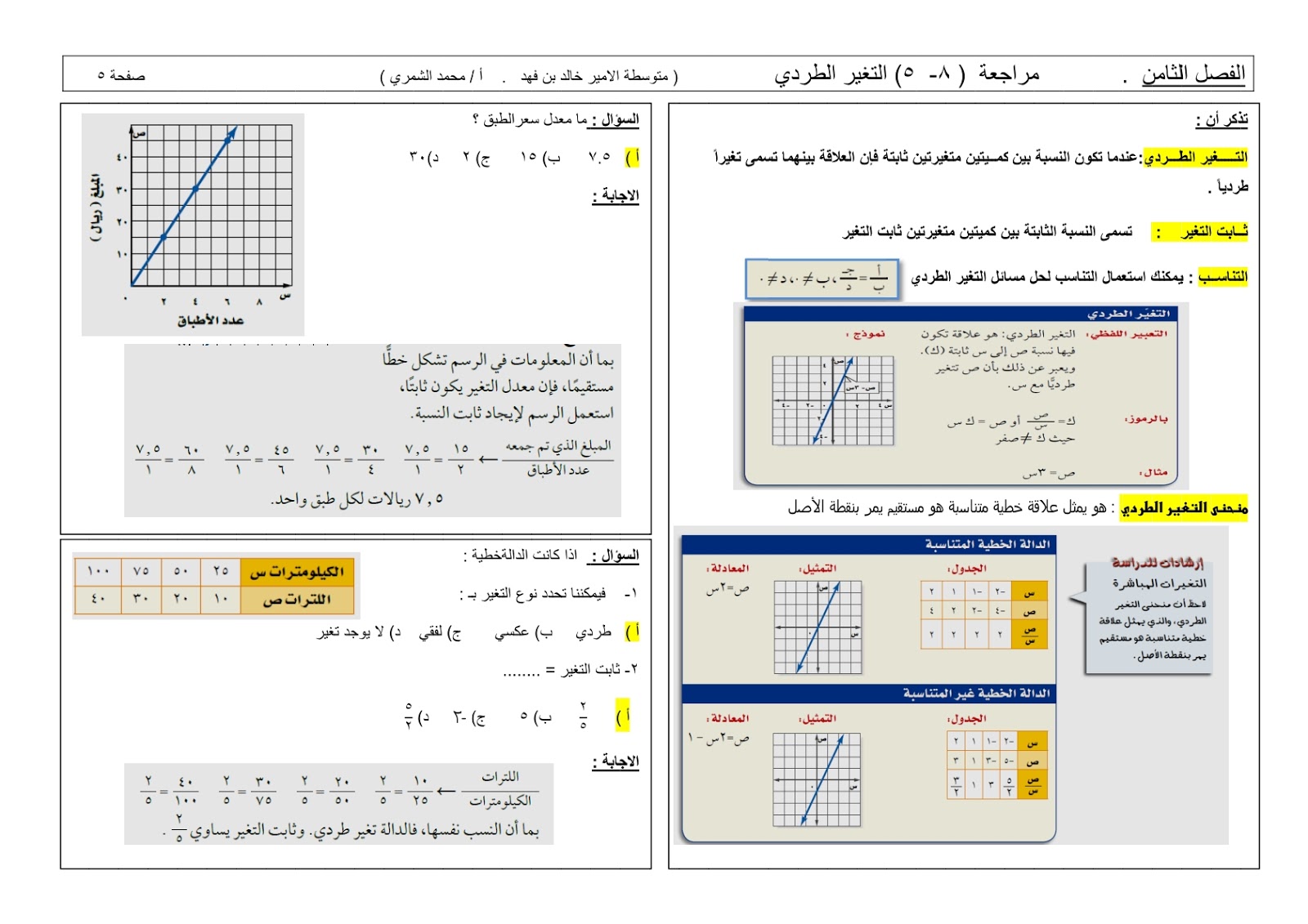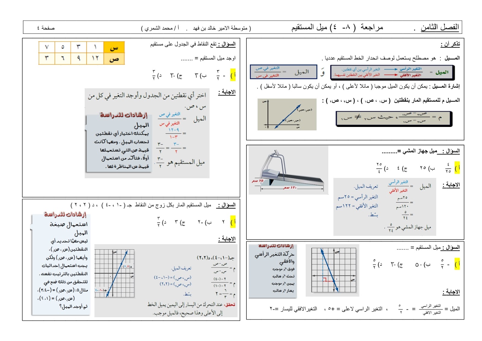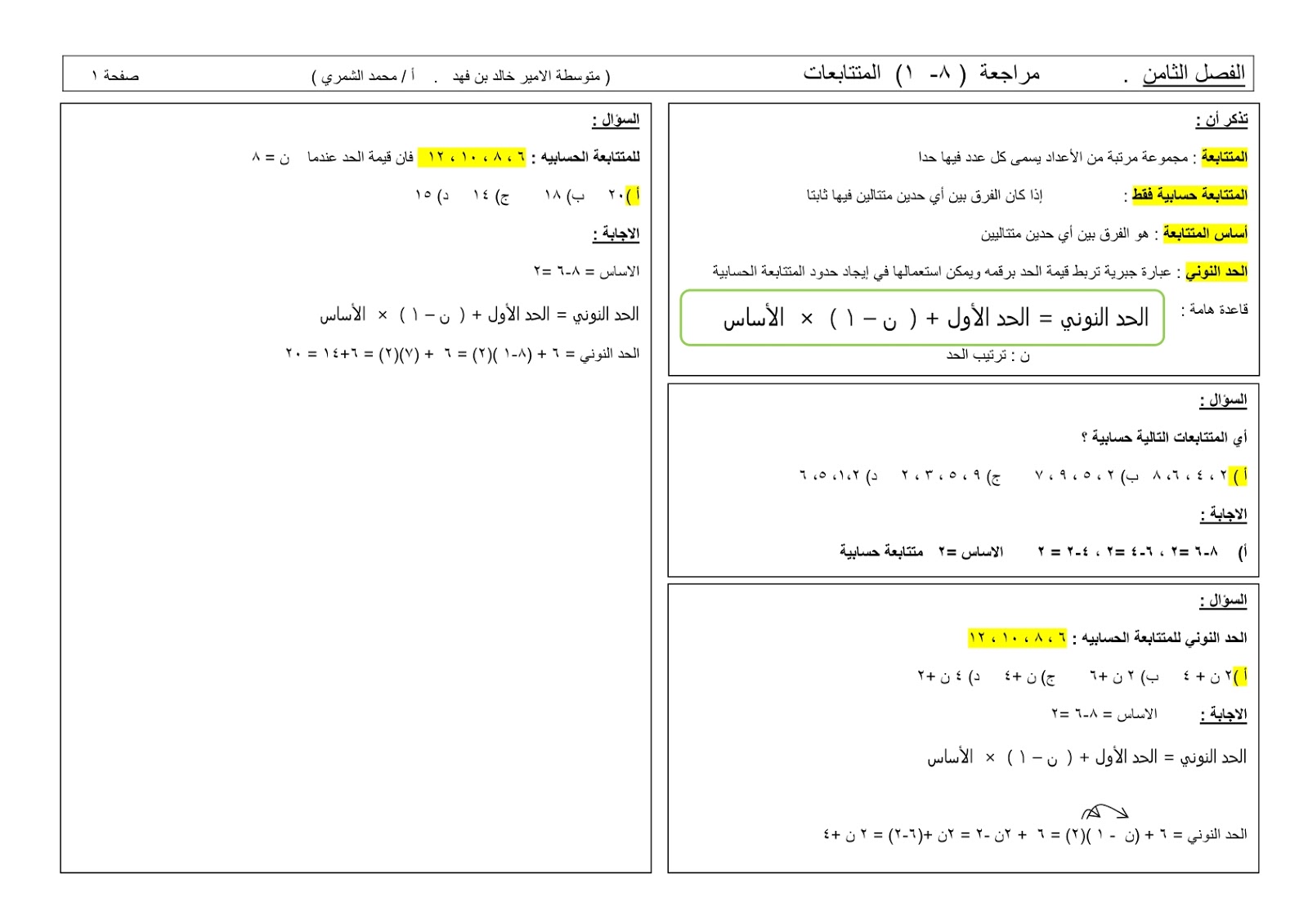 معلومات الملف: ملف هام يتضمن مراجعة الفصل الثامن من كتاب الرياضيات للصف الثاني المتوسط وفق المنهج السعودي | ||
