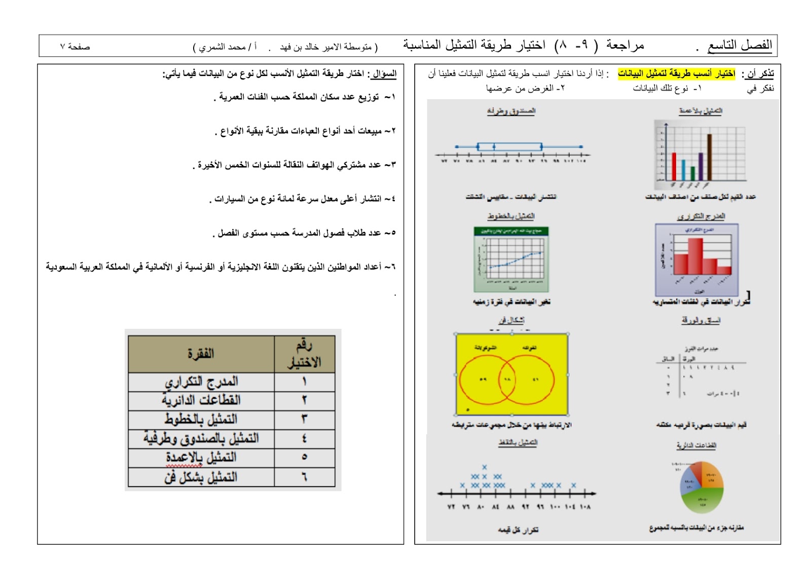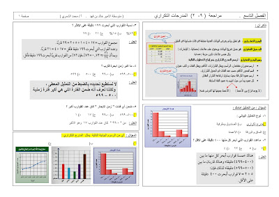 ملف هام يتضمن مراجعة الفصل التاسع من كتاب الرياضيات للصف الثاني المتوسط وفق المنهج السعودي