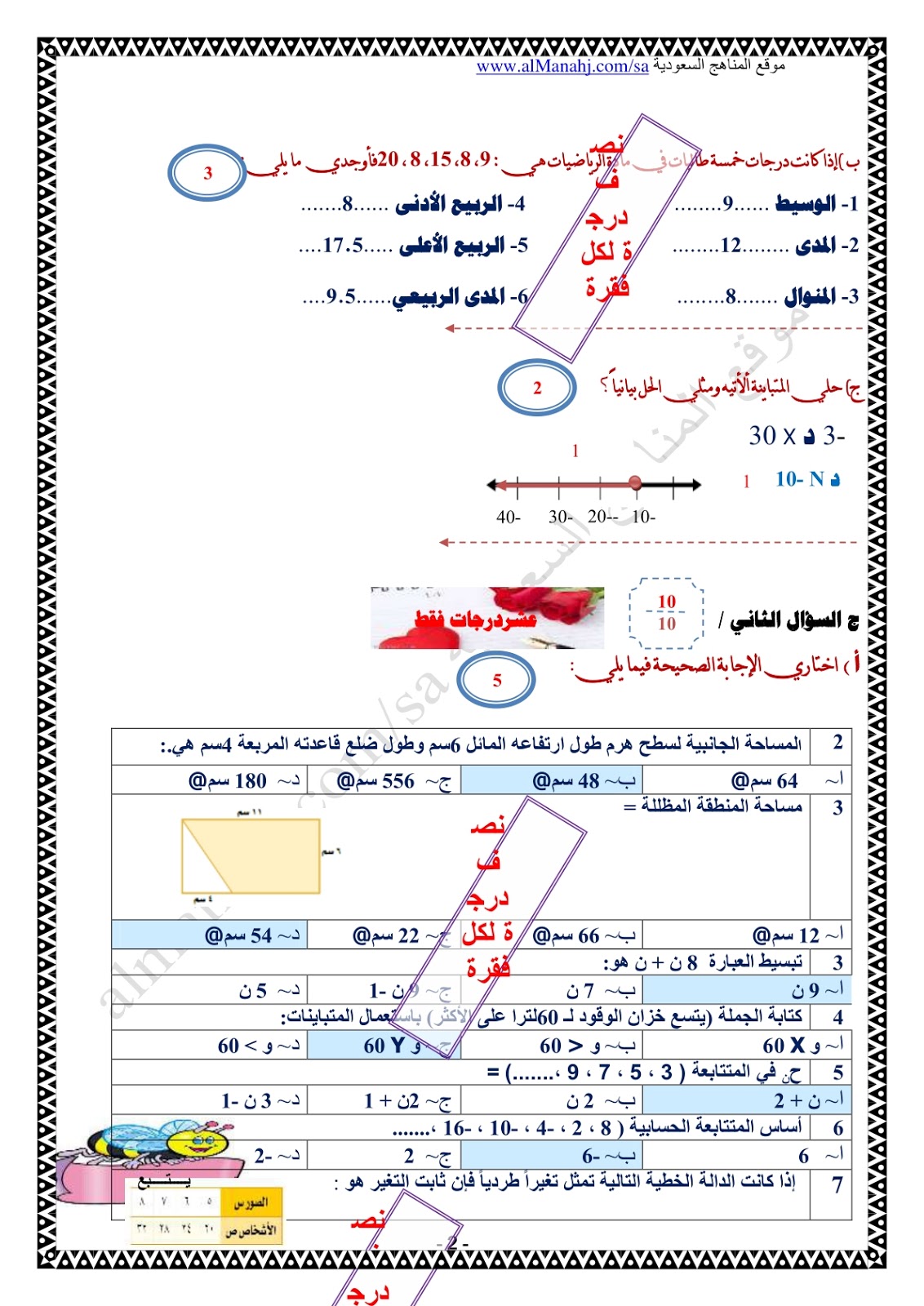 اليكم ملف هام جدا لطلاب الصف الثاني متوسط يتضمن اجابة اختبار مادة الرياضيات لعام 1434_1435 وفق المنهاج السعودي