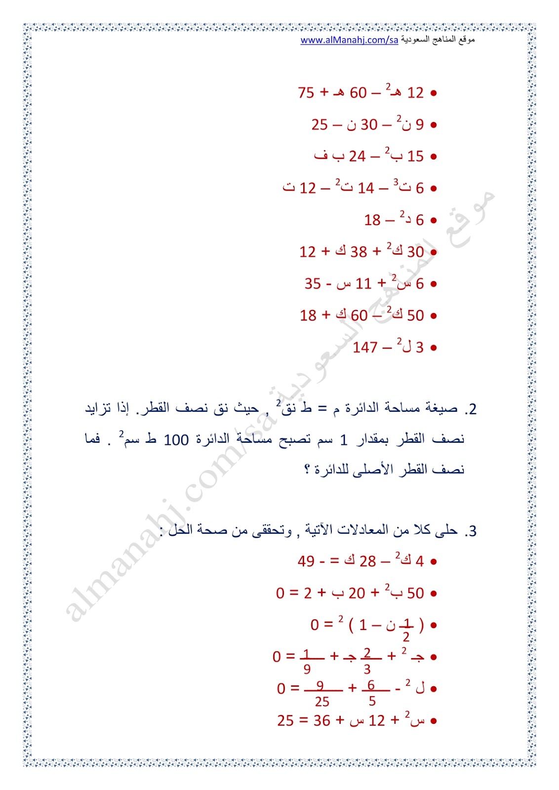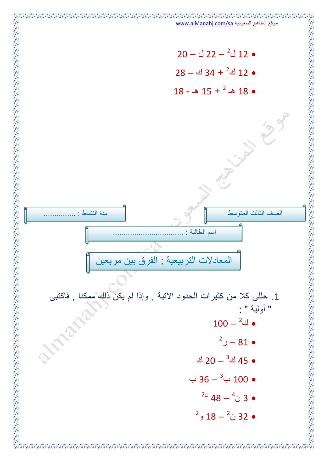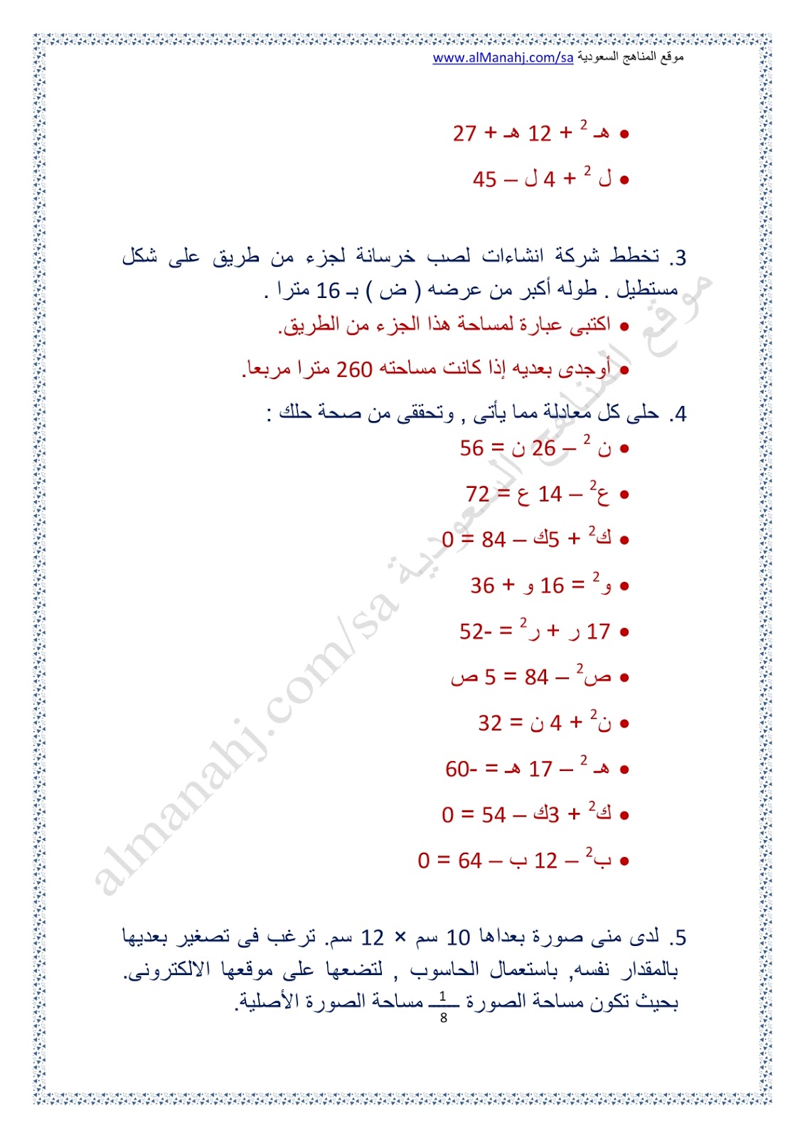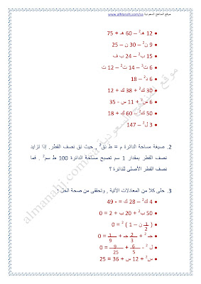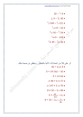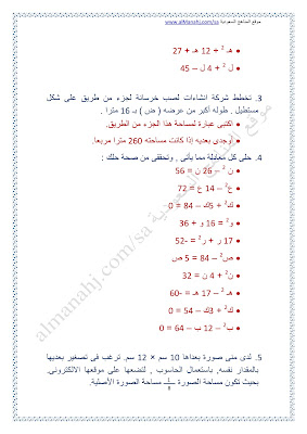 9. الصف الثالث المتوسط, رياضيات, نماذج اختبارات نافس مجال الرياضيات