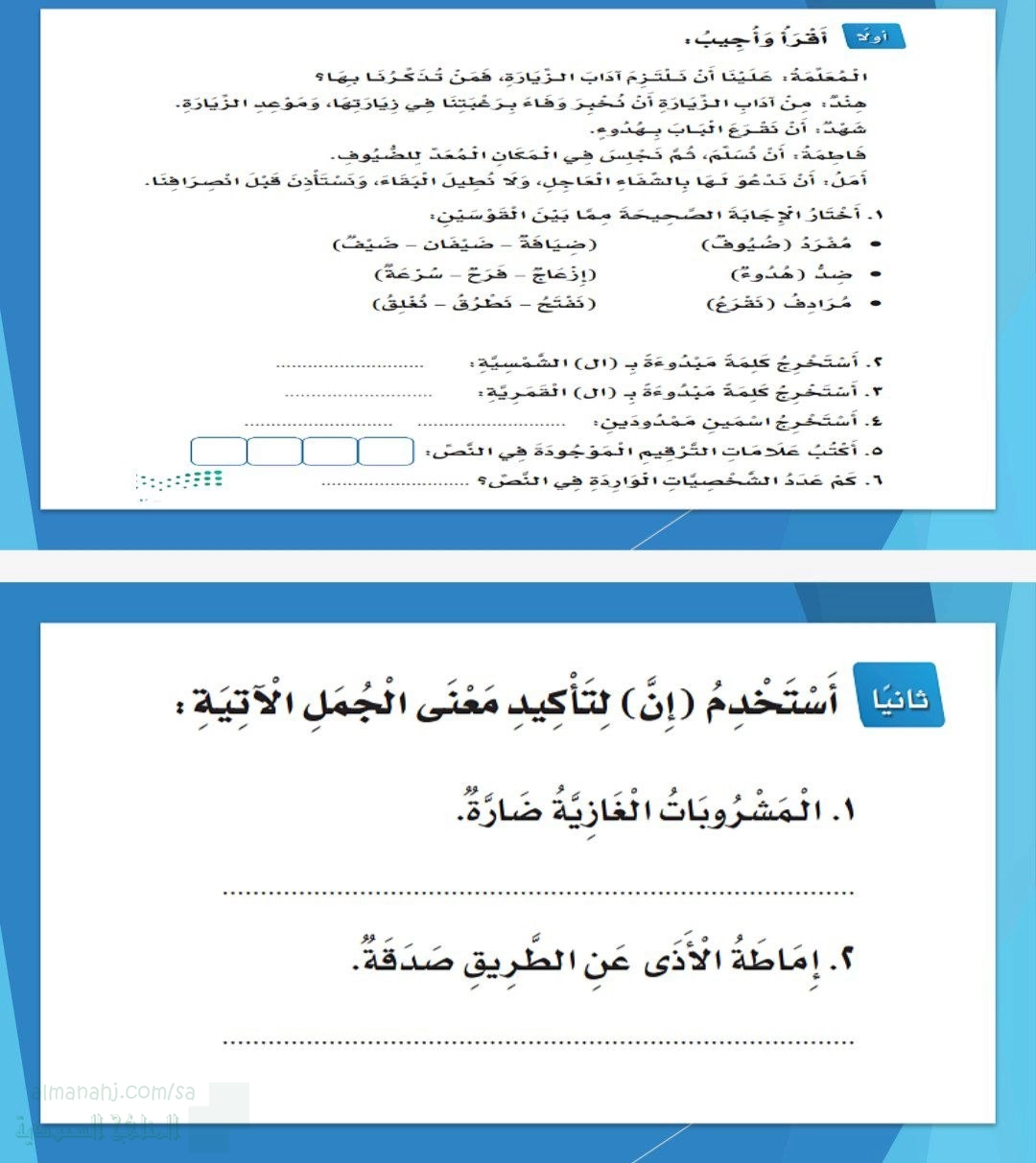 تقويم تجميعي آداب وسلوك بحسب الصف الثاني في مادة اللغة العربية – الفصل الثاني