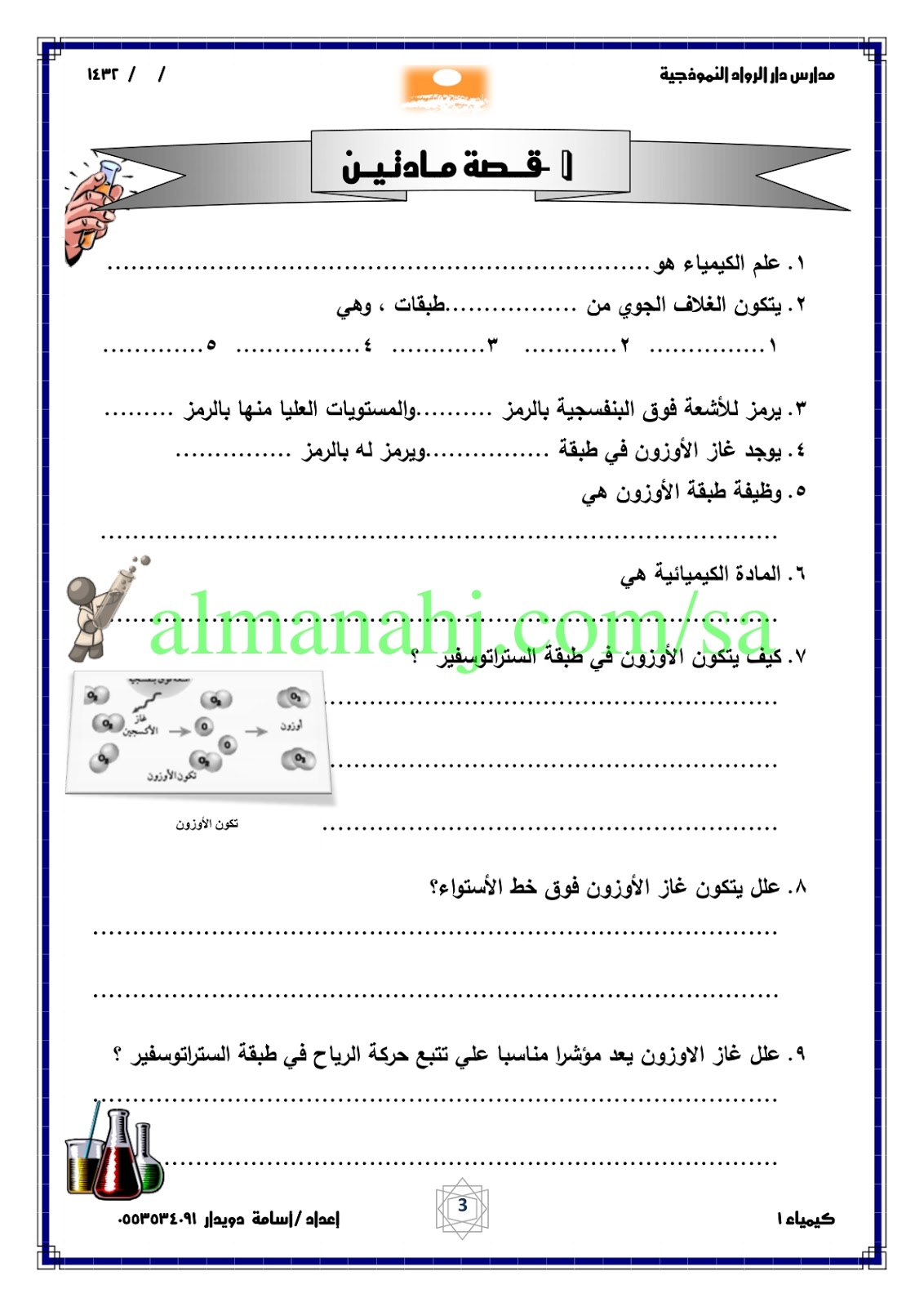 إليكم مذكرة شاملة ورائعة في مادة الكيمياء للصف الأول الثانوي وفق المنهج السعودي