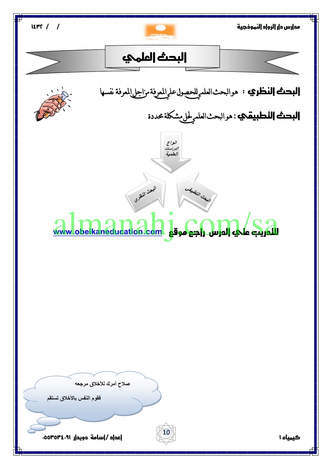 معلومات الملف: إليكم مذكرة شاملة ورائعة في مادة الكيمياء للصف الأول الثانوي وفق المنهج السعودي | ||