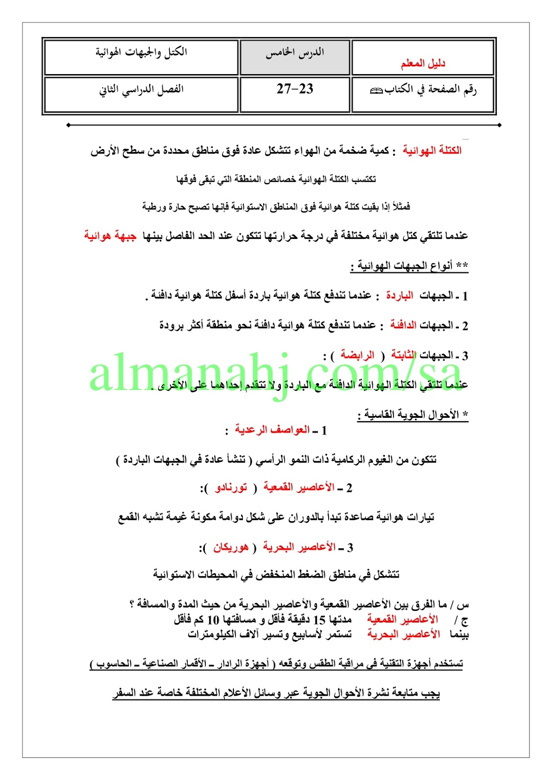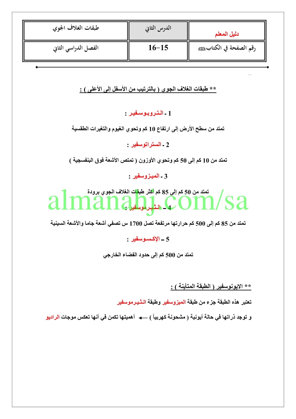 3. مراجعة محلولة للفصل السابع الغلاف الجوي