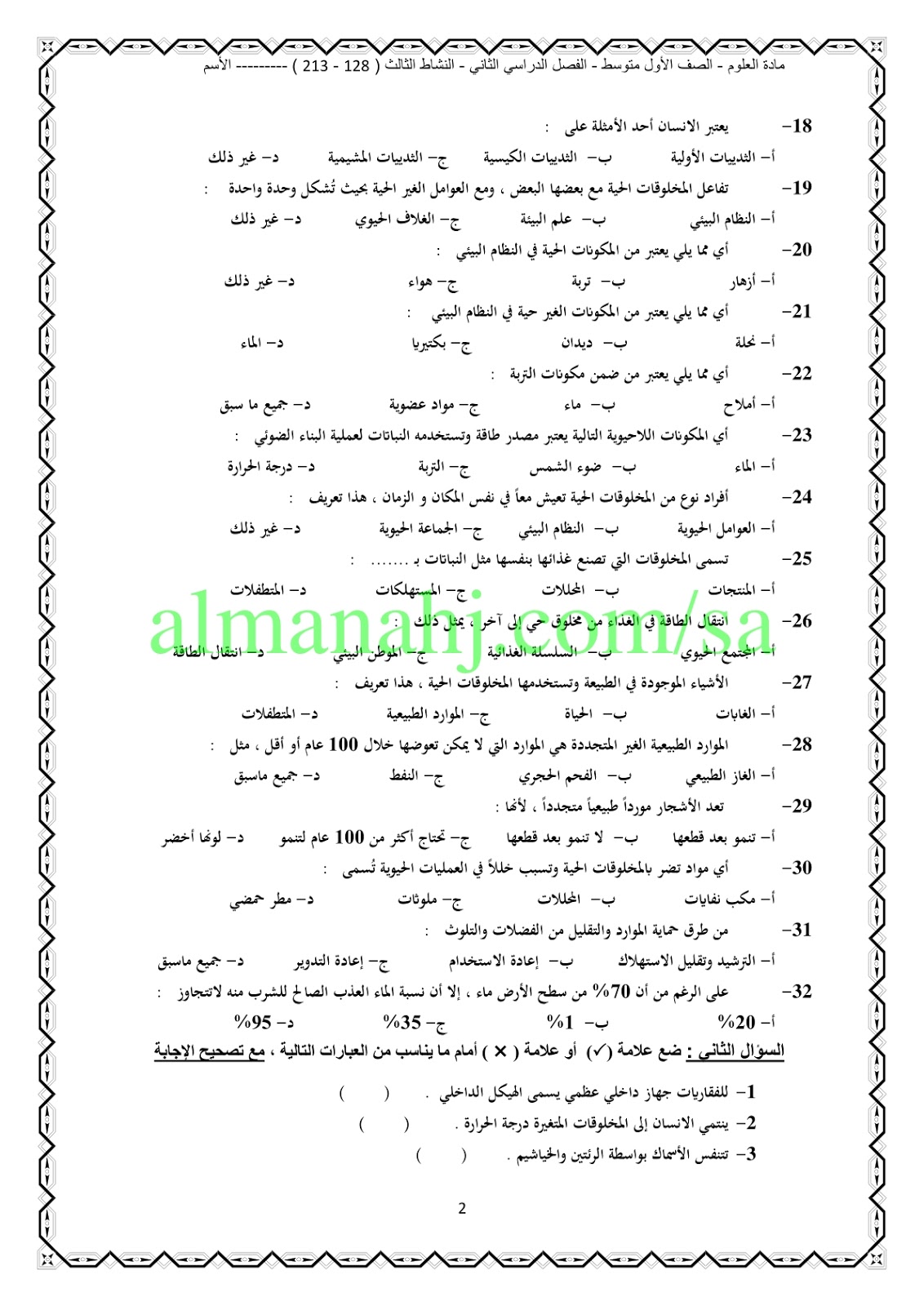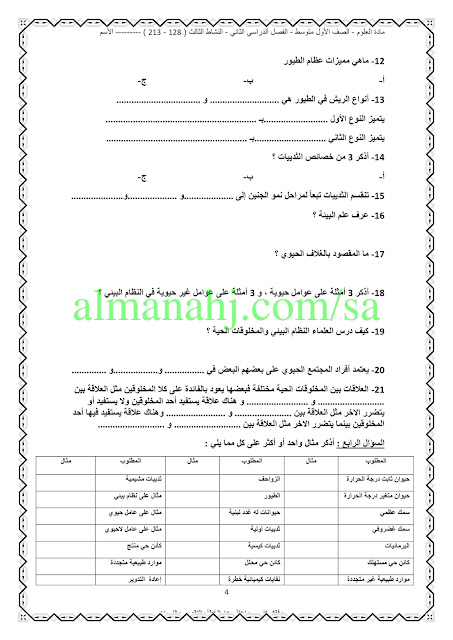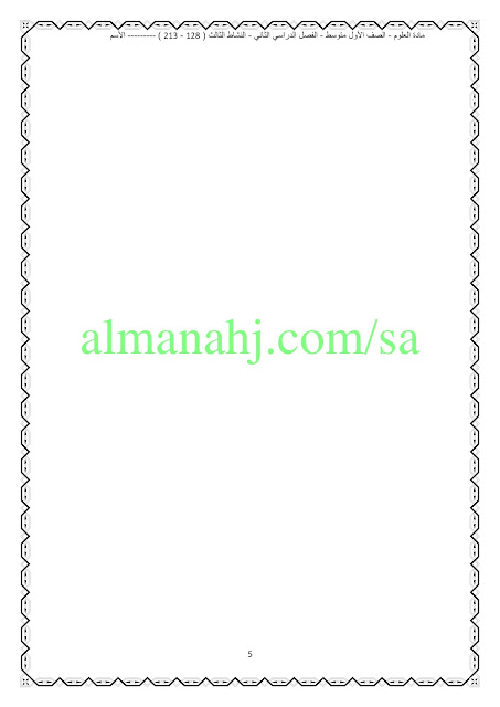 بنك الأسئلة لمادة العلوم/النشاط الثالث/ للصف الأول المتوسط ويتضمن اختيار من متعدد وصح وخطأ وأكمل وفق المنهاج السعودي