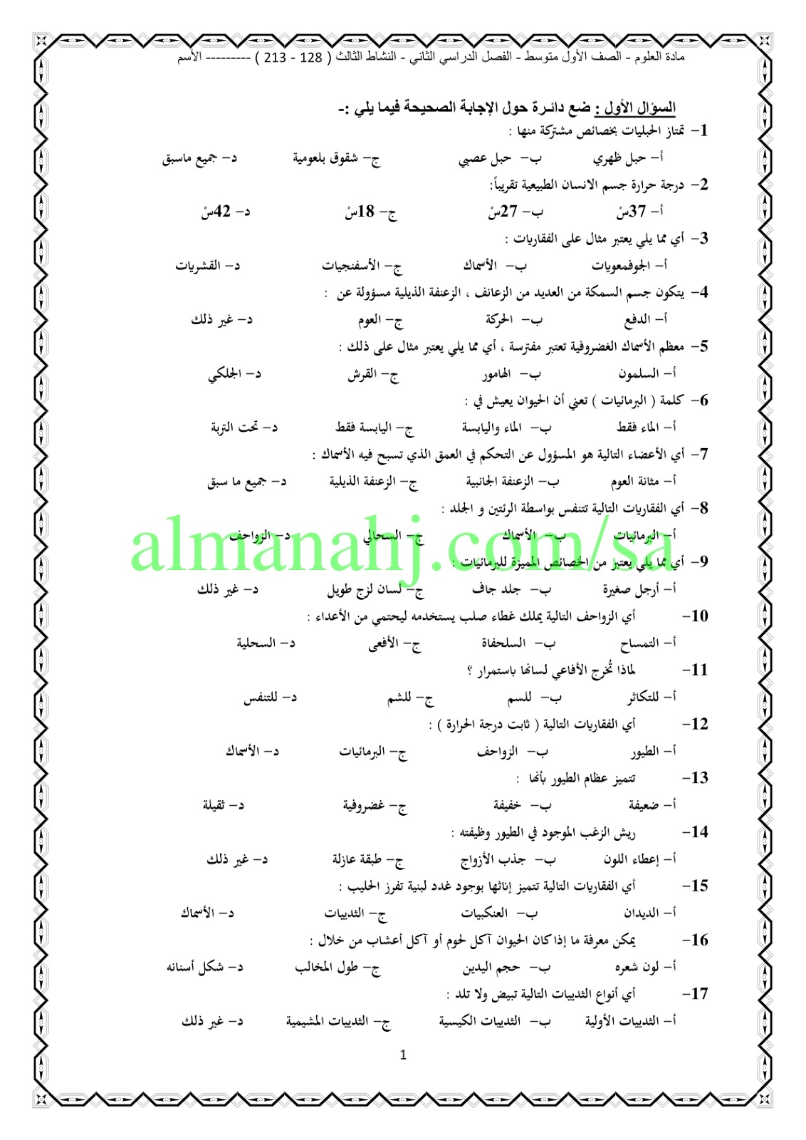 معلومات الملف: بنك الأسئلة لمادة العلوم/النشاط الثالث/ للصف الأول المتوسط ويتضمن اختيار من متعدد وصح وخطأ وأكمل وفق المنهاج السعودي | ||
