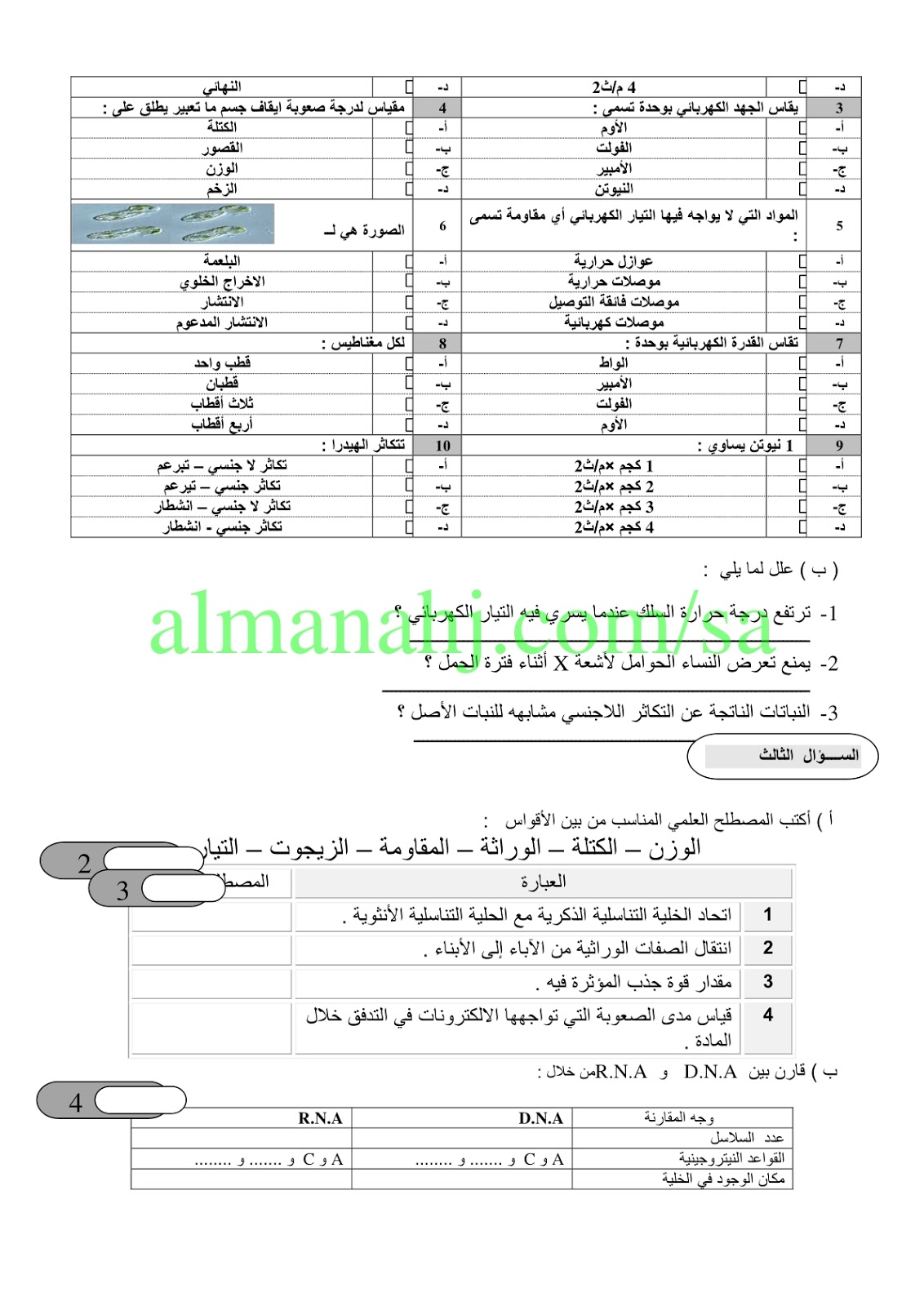5. نموذج أسئلة اختبار نهائي لمنطقة حايل