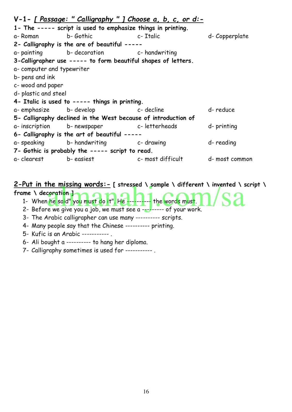 8. الصف الثاني, لغة عربية, نموذج إجابة الاختبار النهائي البديل لغتي