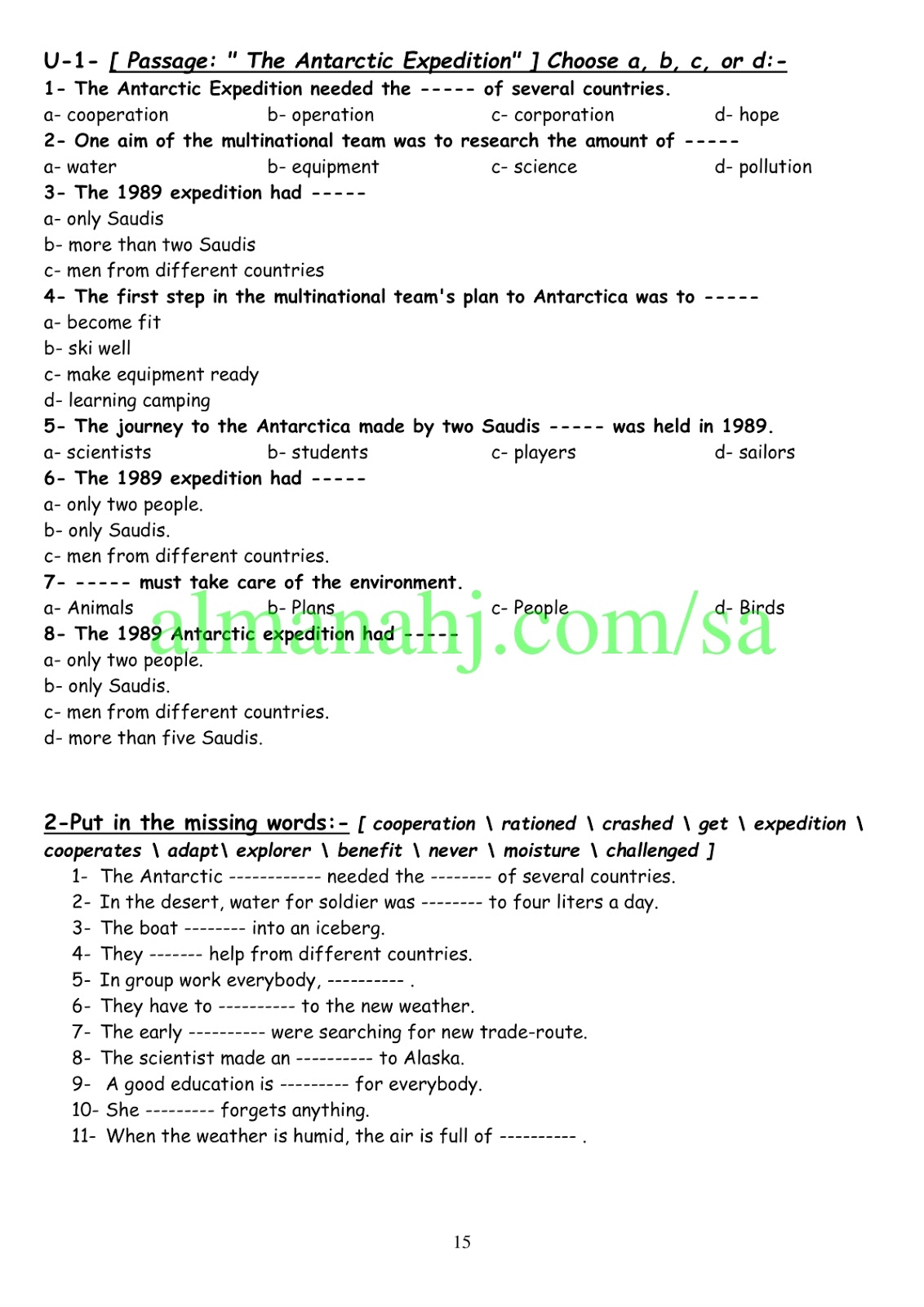 9. الصف الأول, لغة عربية, نموذج إجابة الاختبار النهائي البديل لغتي