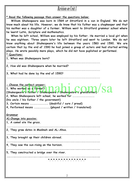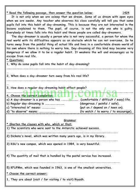 أوراق عمل تتضمن ملخص شامل و اسئلة الوزارة للفترة من 1415 إلى 1425 هجري في مادة اللغة الإنجليزية للصف الثالث الثانوي العلمي الفصل الدراسي الثاني وفق المنهاج السعودي