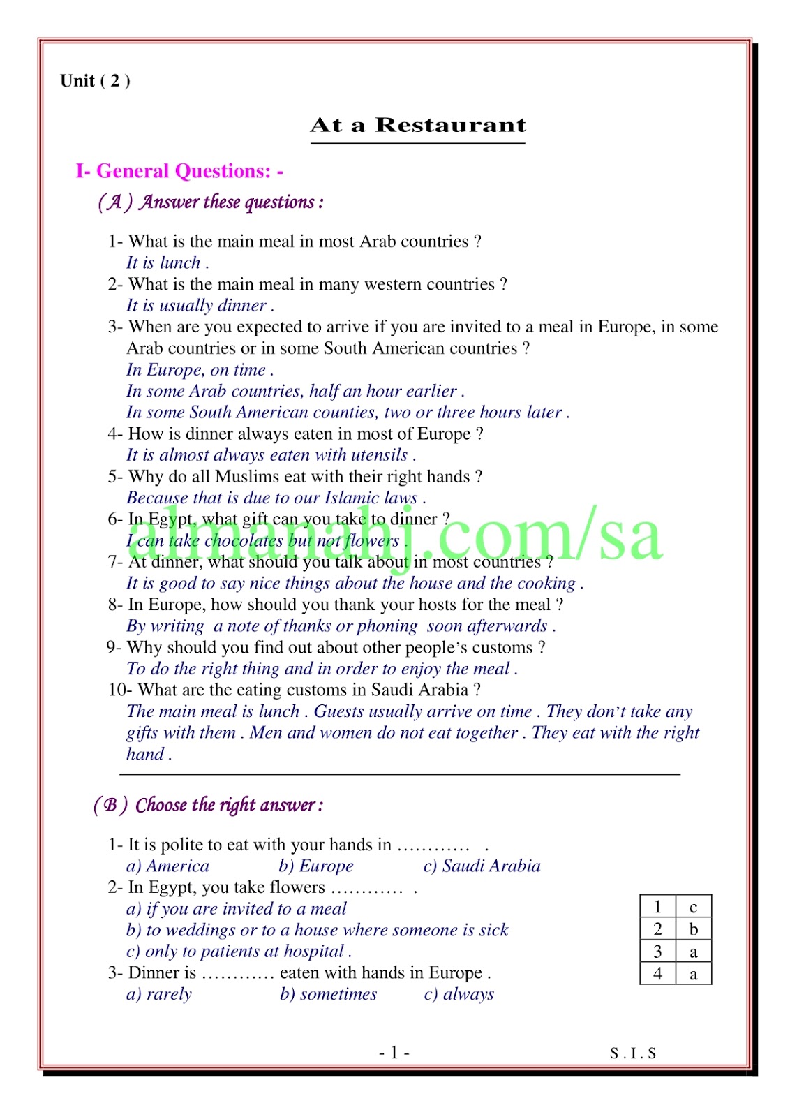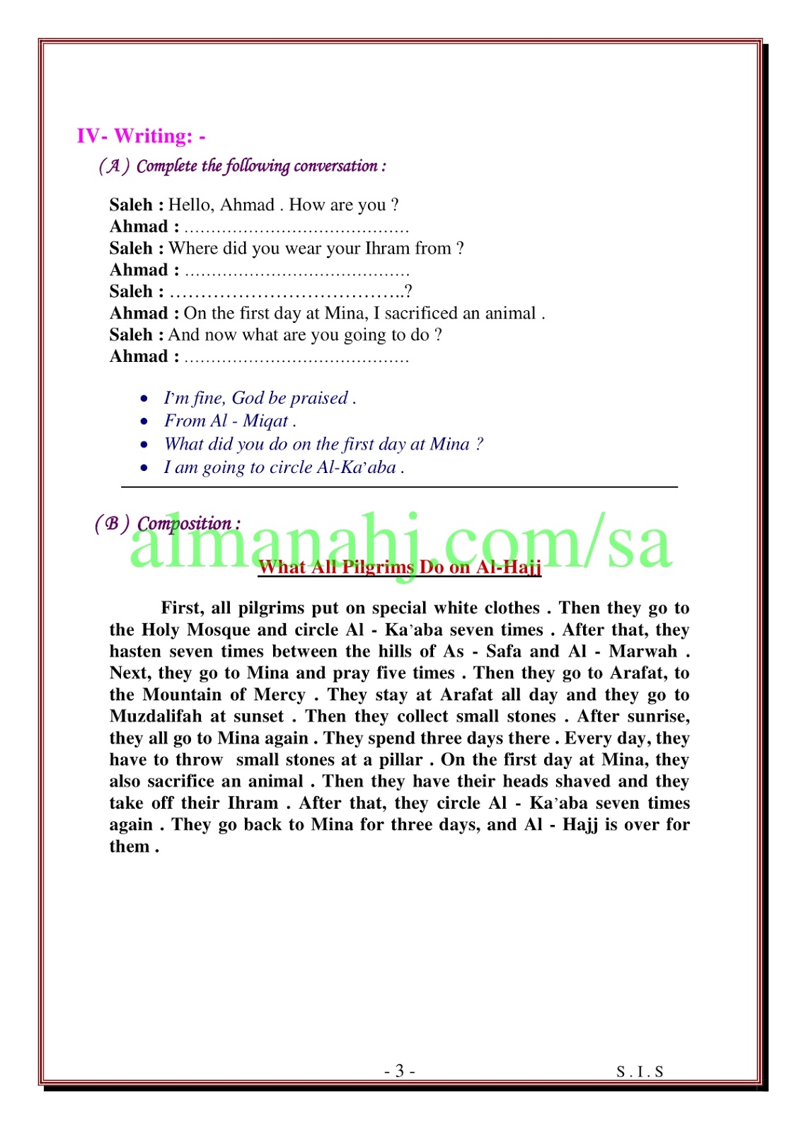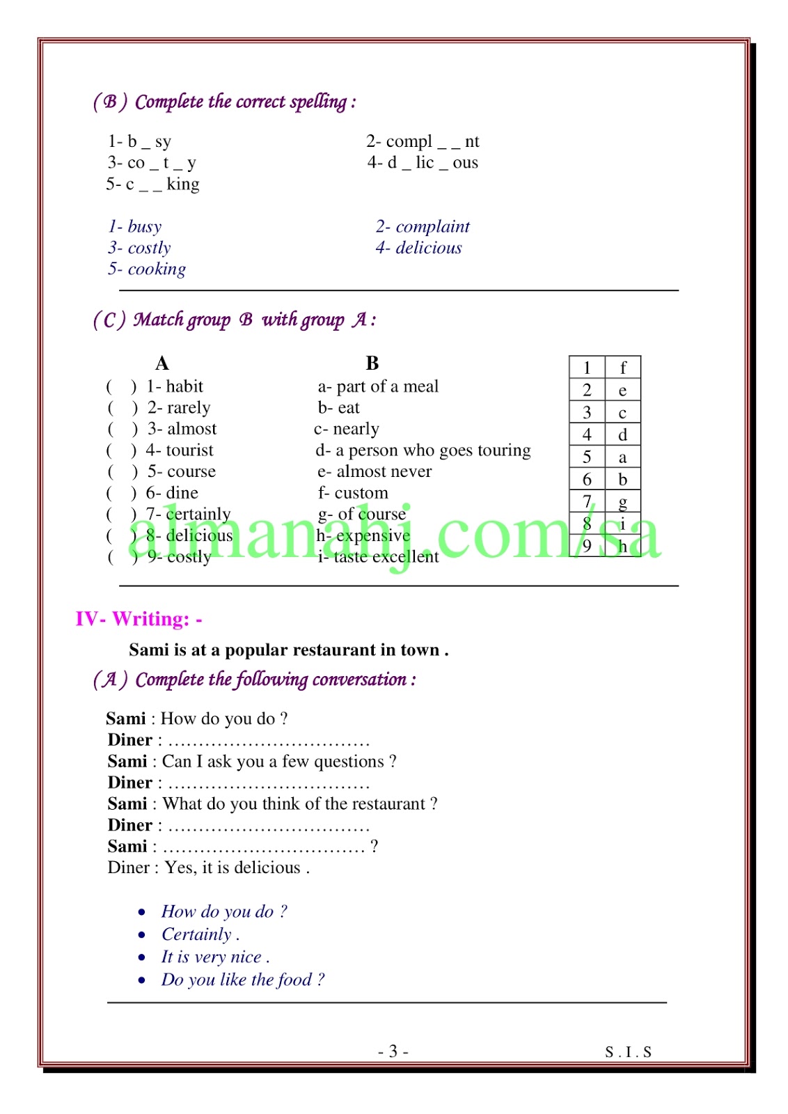 3. نماذج اختبار استماع شفوي مع الإجابات