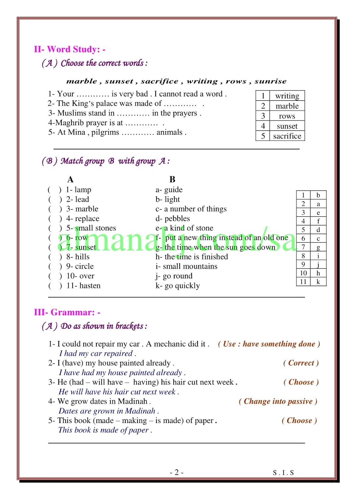 2. اختبارات نهائية مع نماذج الإجابة Mega goal