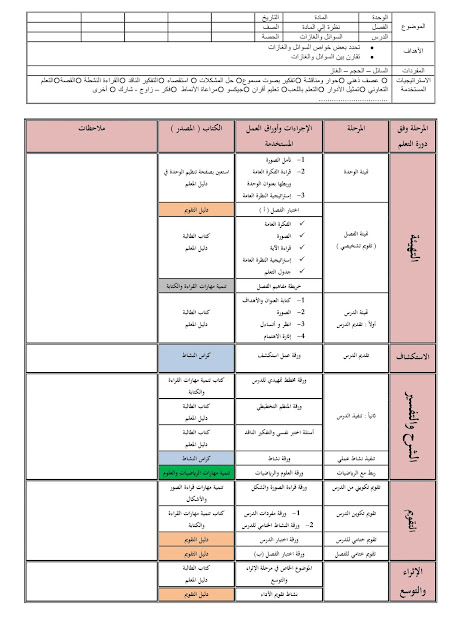 3. الخطة الأسبوعية الشاملة للفصل الثاني