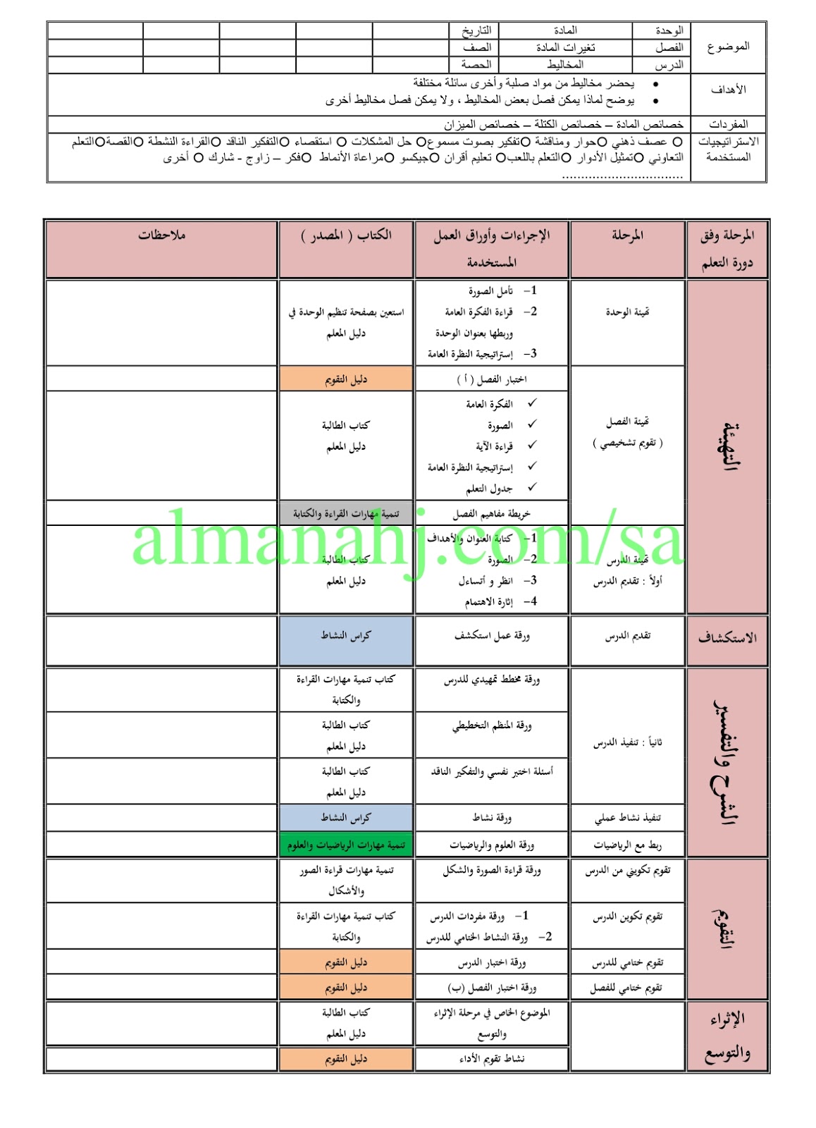 3. الخطة الأسبوعية للفصل الثاني مع الأهداف