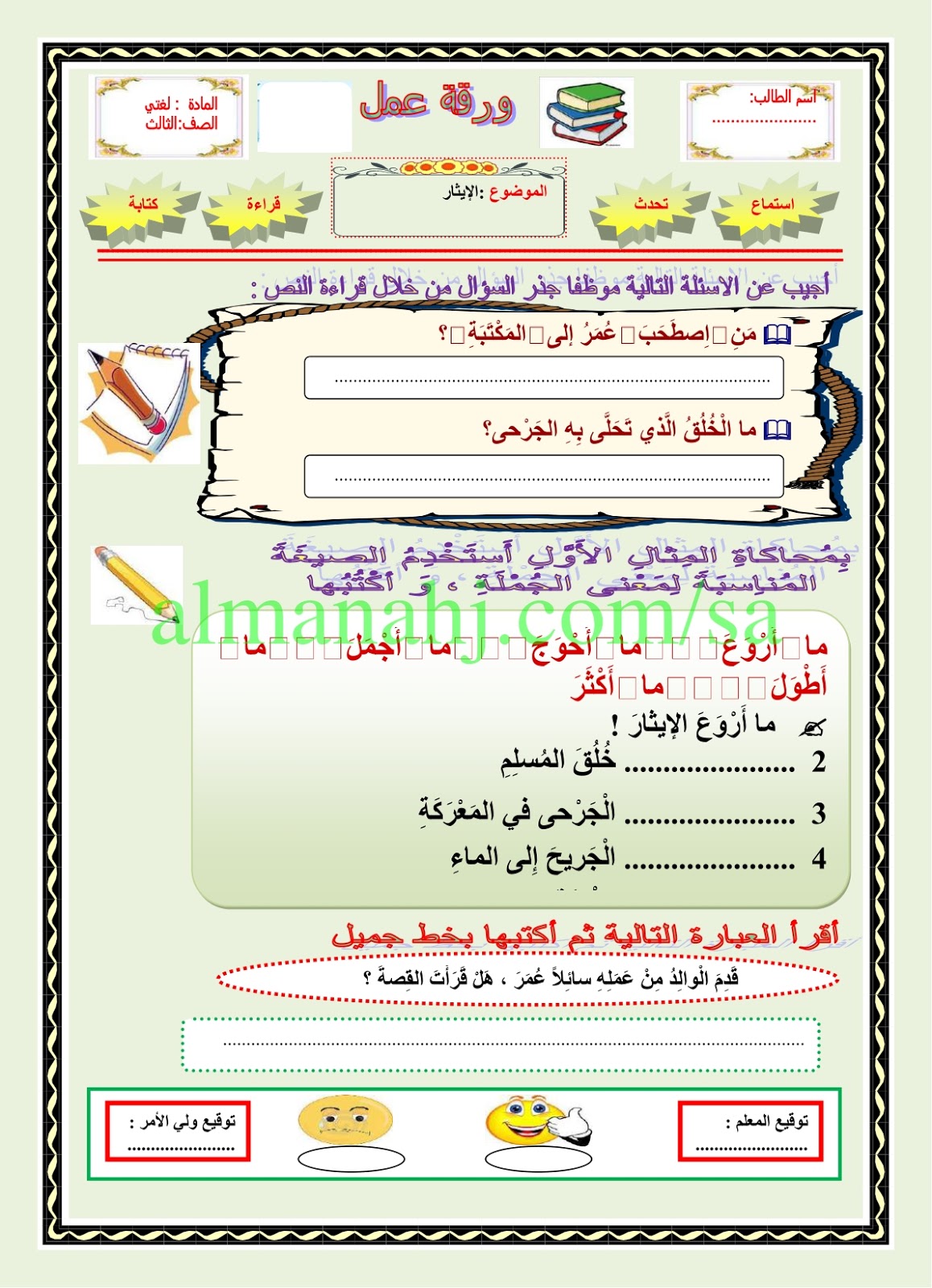 | أنت هنا: موقع المناهج ⇦ المناهج السعودية ⇦ الصف الثالث ⇦ لغة عربية ⇦ الفصل الثاني ⇦ أوراق عمل |