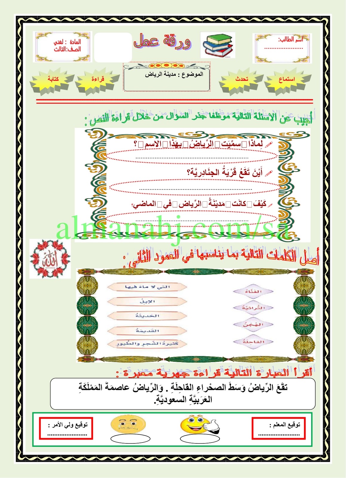 إليكم ملف رائع يتضمن أوراق عمل لمنهج مادة لفتي للصف الثالث الفصل الدراسي الثاني وفق المنهاج السعودي