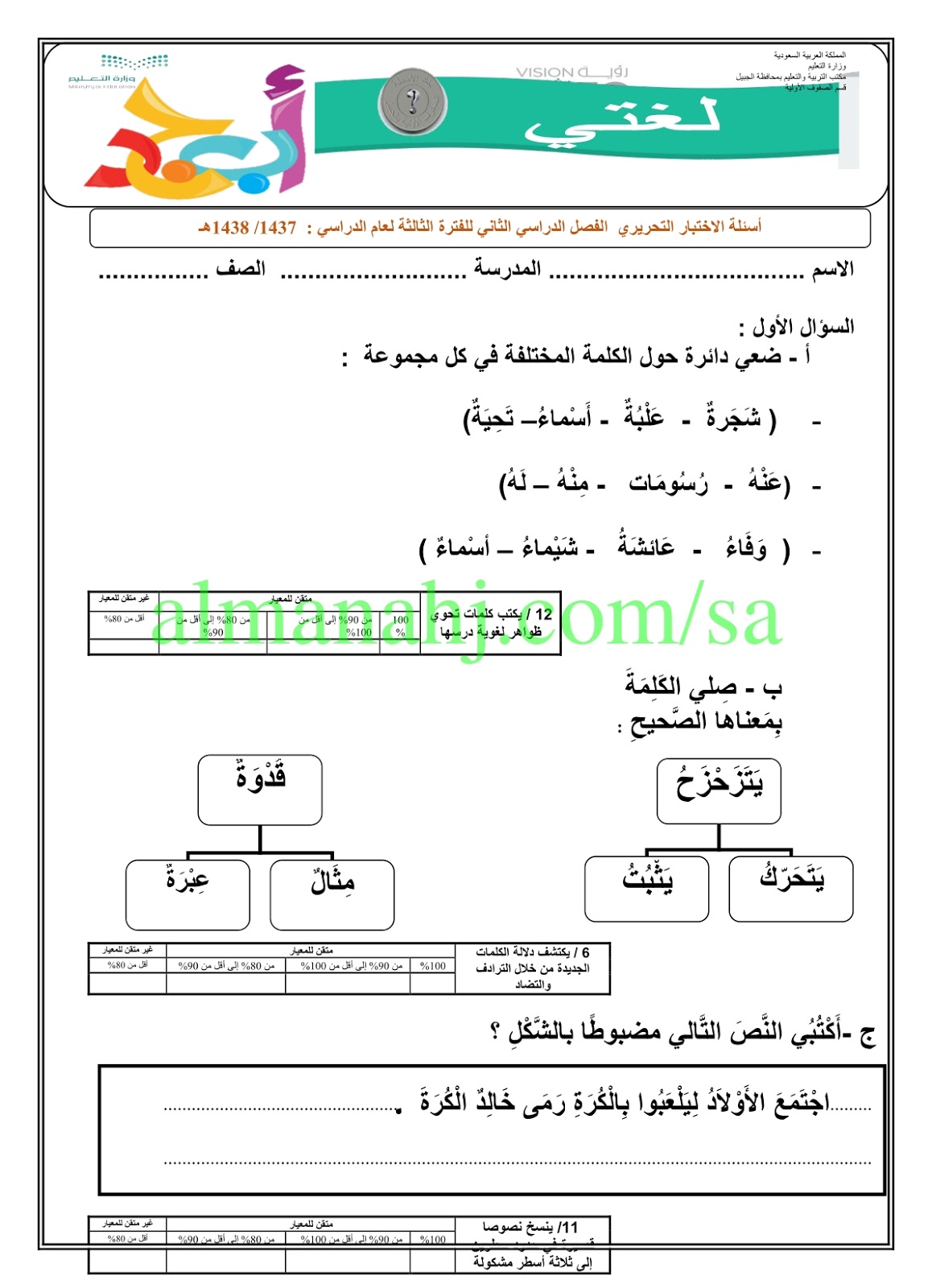 2. اختبار لغتي نهائي الدور الأول 1446ه‍