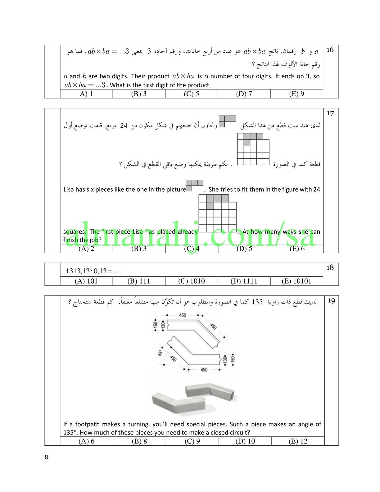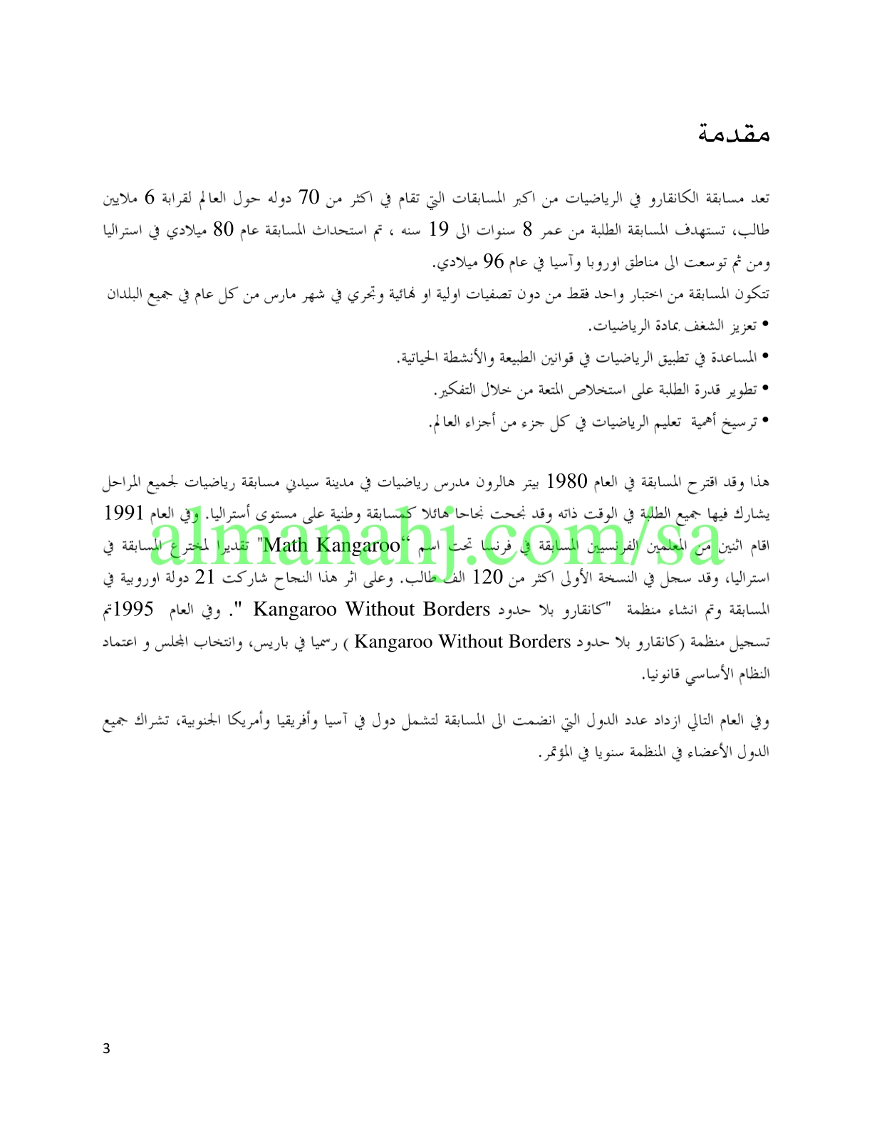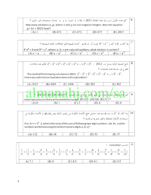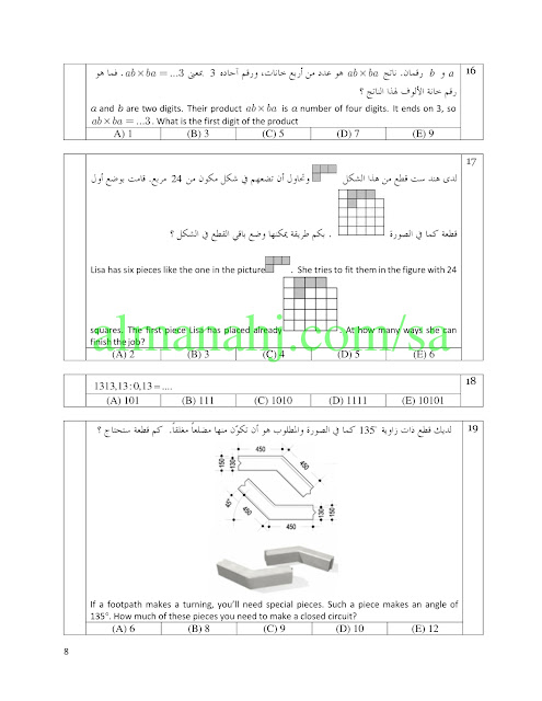 إليكم ملف هام جدا يتضمن اسئلة مسابقة الكونجارو للرياضيات للصف الأول المتوسط وفق المنهاج السعودي