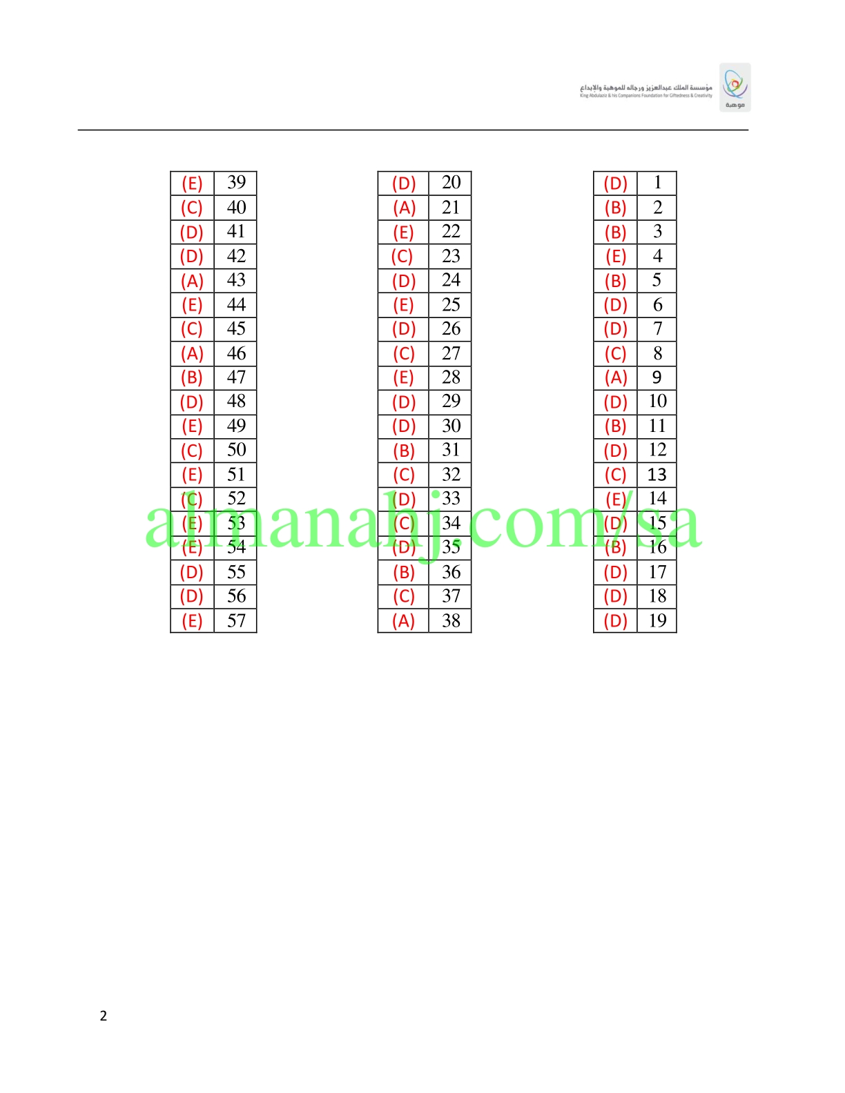 إليكم ملف هام يتضمن إجابة اسئلة الكونجارو للرياضيات للصف الثاني الابتدائي
