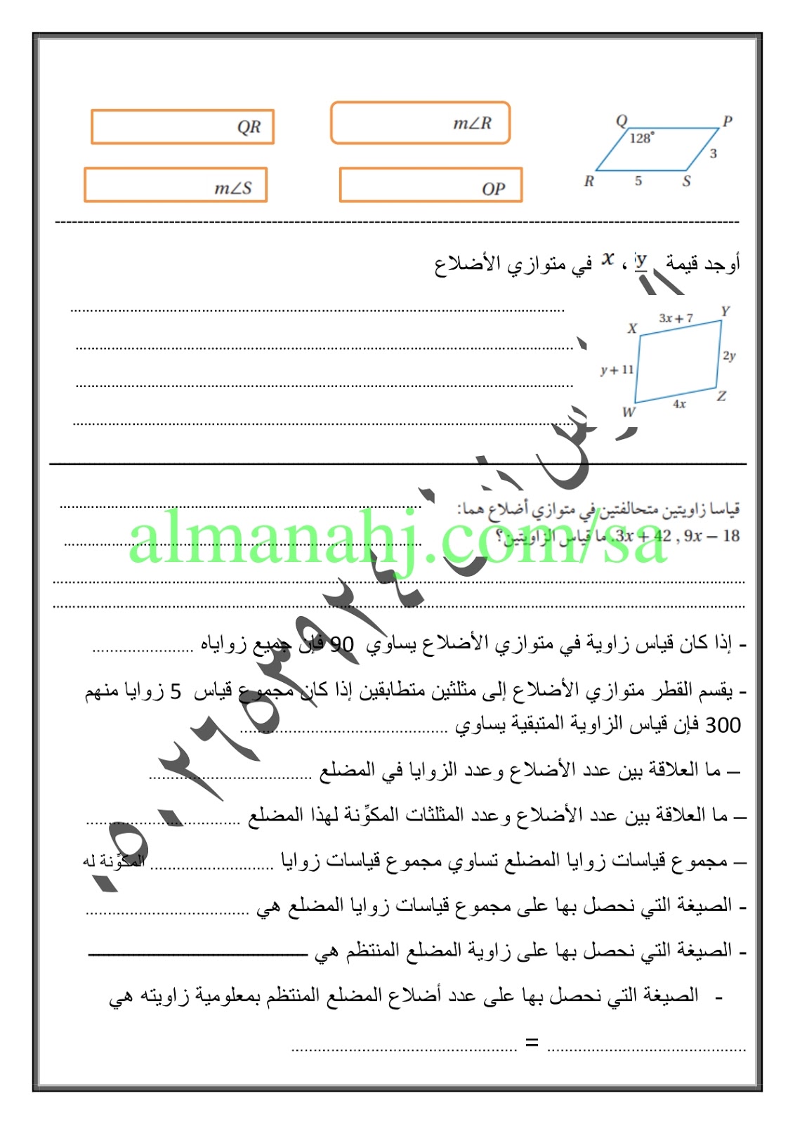 5. مراجعة درس متوازي الأضلاع