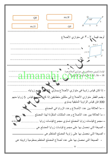 اوراق عمل رياضيات