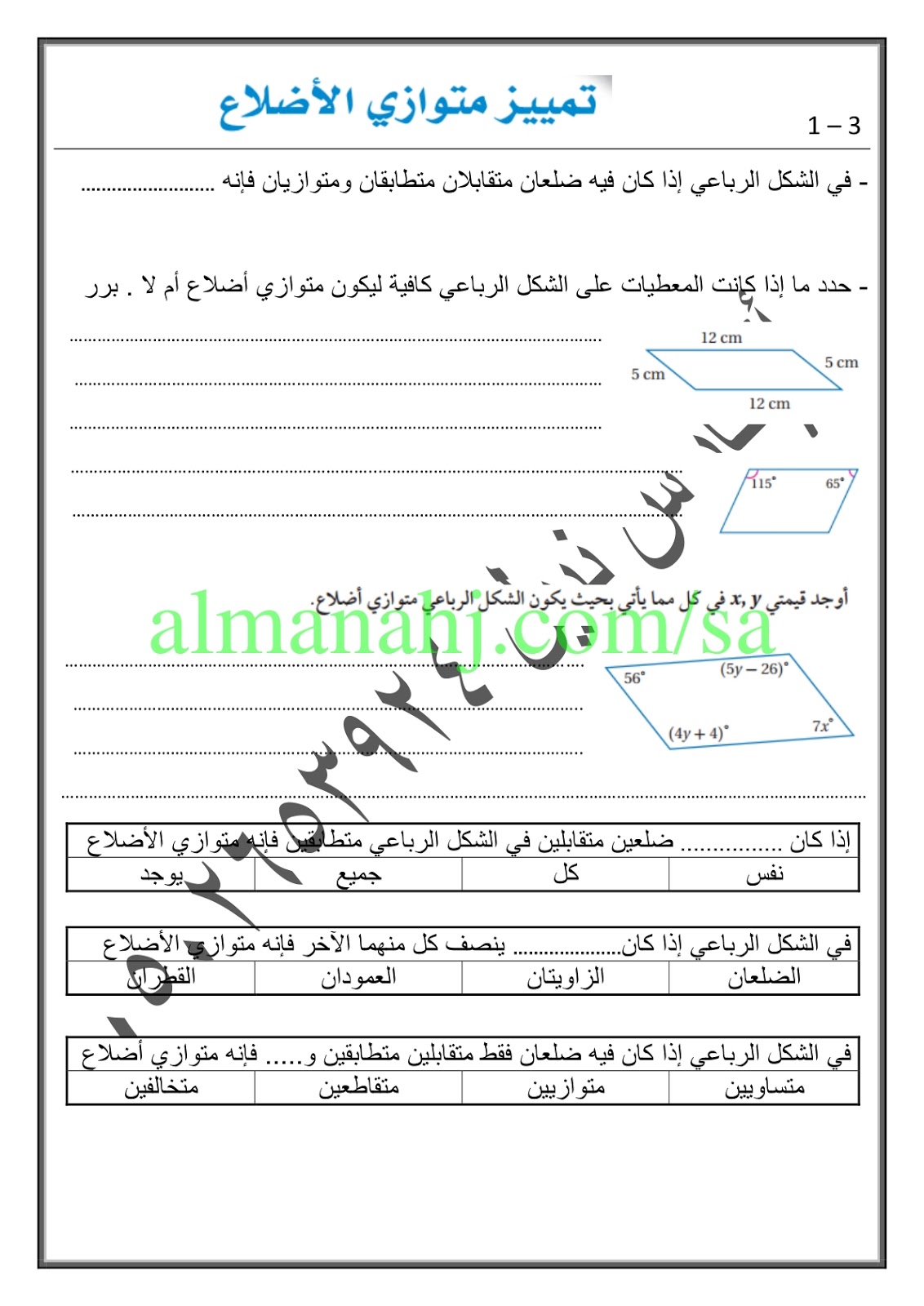 4. مراجعة درس تمييز متوازي الأضلاع