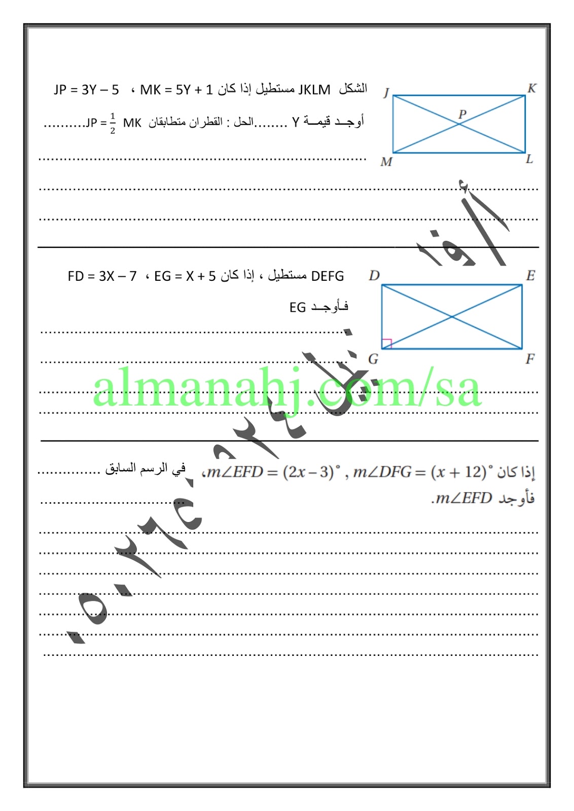 3. مراجعة درس المستطيل