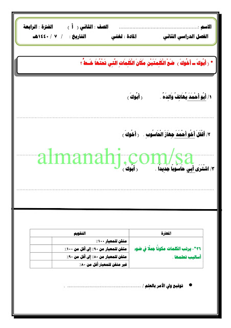 إليكم ملف هام يتضمن تقييم تجميعي لمادة اللغة العربية للصف الثاني الابتدائي وفق المنهاج السعودي