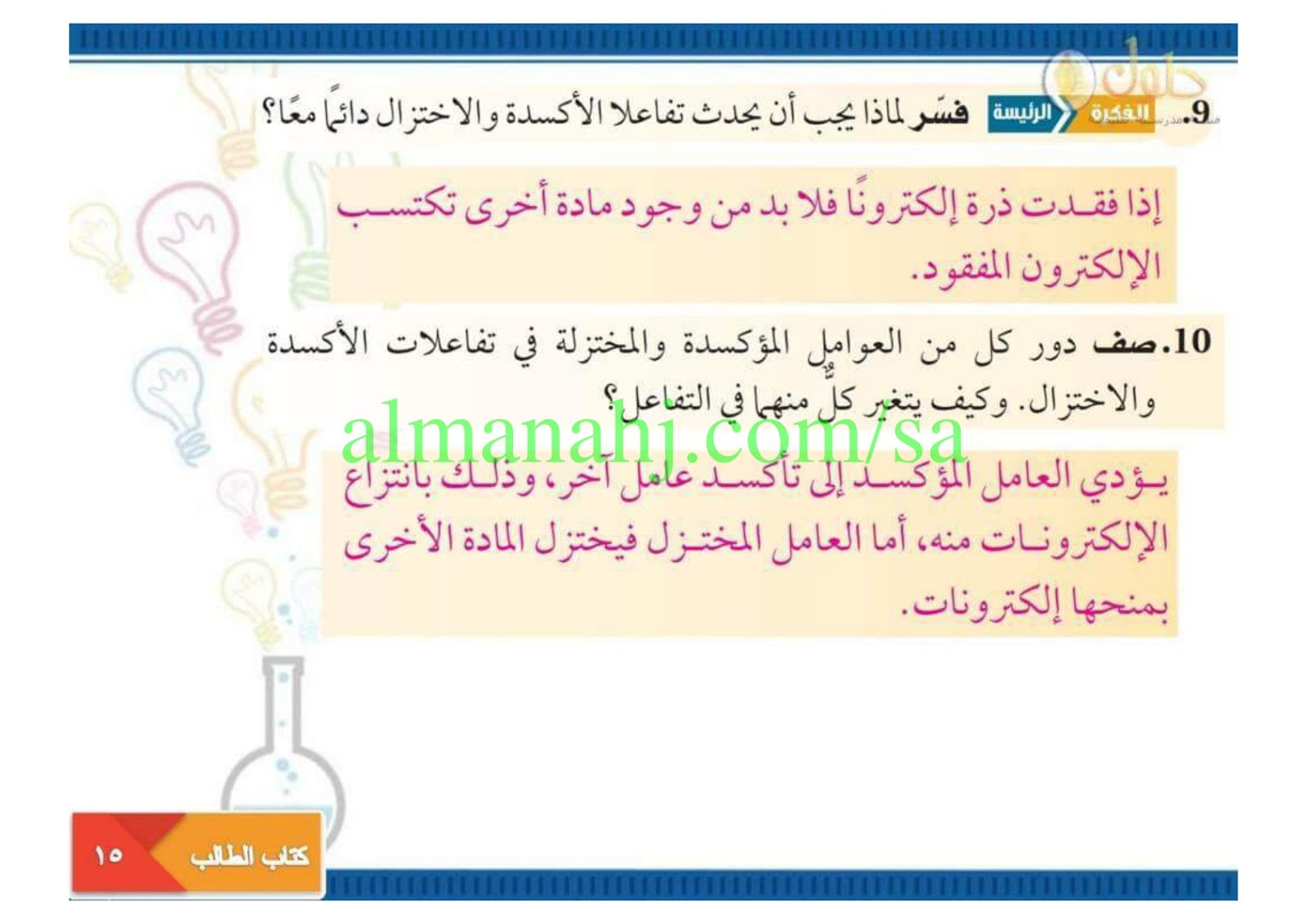 إليكم ملف هام يتضمن حل الوحدة الأولى تفاعلات الاكسدة و الاختزال من كتاب الكيمياء للصف الثالث الثانوي وفق المنهاج السعودي