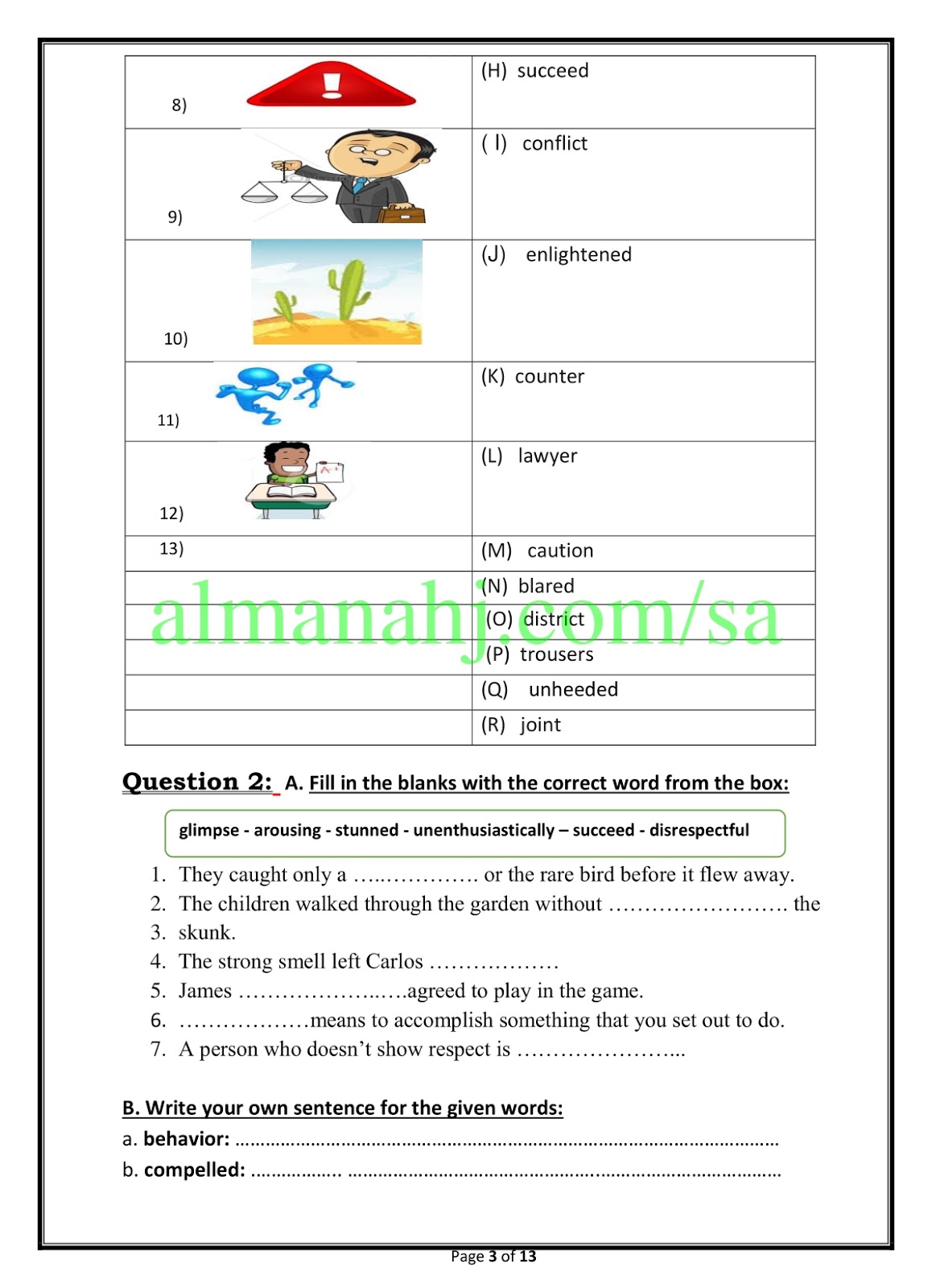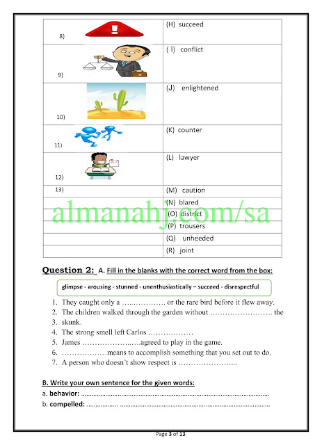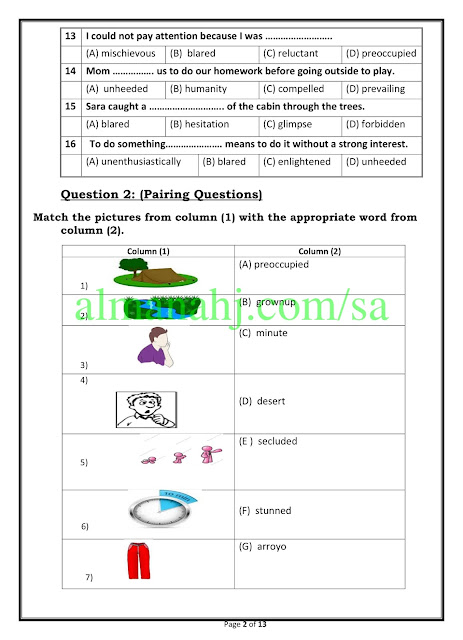 3. نموذج أسئلة اختبار نهائي لمنطقة الباحة