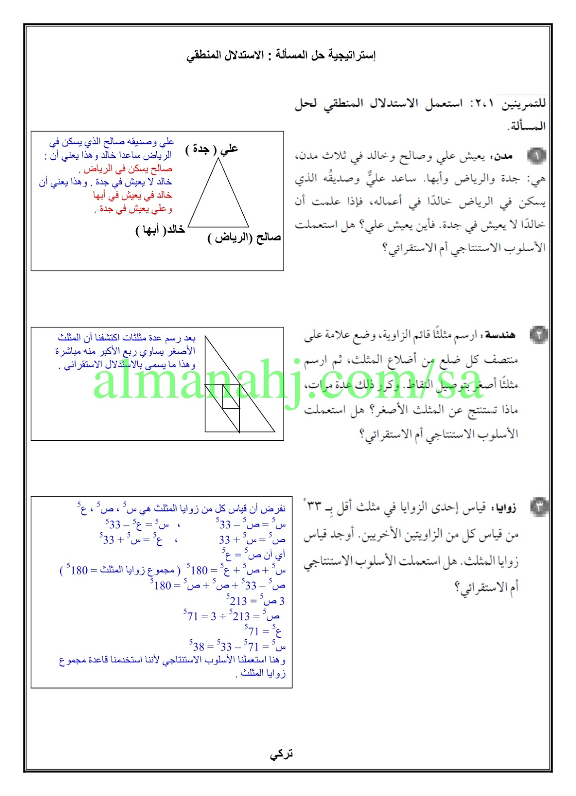 تم إيجاد الملف: حلول تمارين (استراتيجية حل المسألة الاستدلال المنطقي)