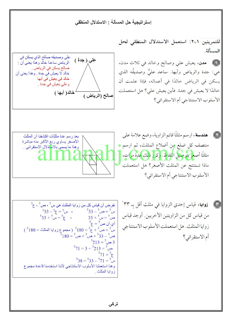 إليكم ملف يتضمن حلول تمارين كتاب الرياضيات (استراتيجية حل المسألة الاستدلال المنطقي) للصف الأول متوسط وفق المنهج السعودي
