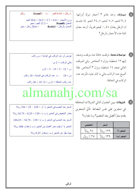 أنت هنا: موقع المناهجالمناهج السعودية الصف الأول المتوسط رياضيات الفصل الثاني حلول