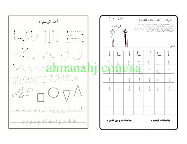 إليكم ملف هام في مادة اللغة العربية للصف الأول الابتدائي يتضمن مذكرة خط النسخ وفقالمنهاج السعودي