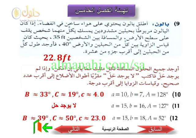 أنت هنا: موقع المناهجالمناهج السعودية الصف الثالث الثانوي رياضيات الفصل الأول حلول