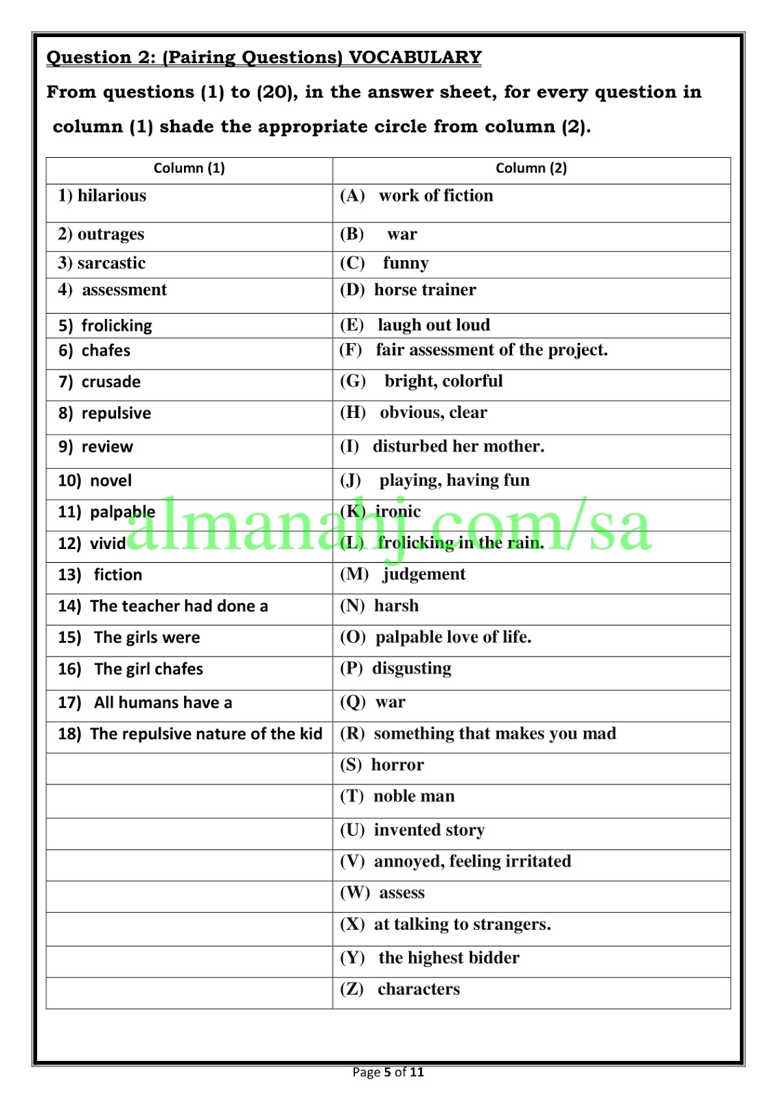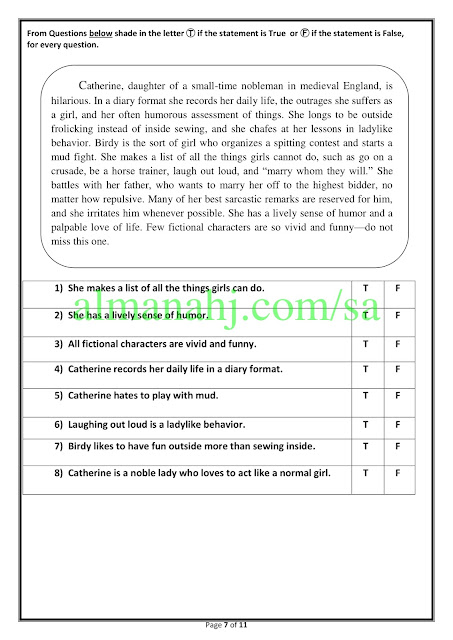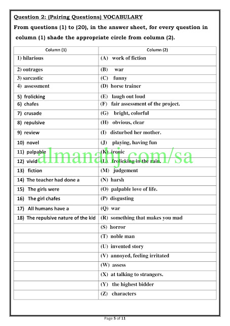 2. نموذج الإجابة على الاختبار المركزي في عسير