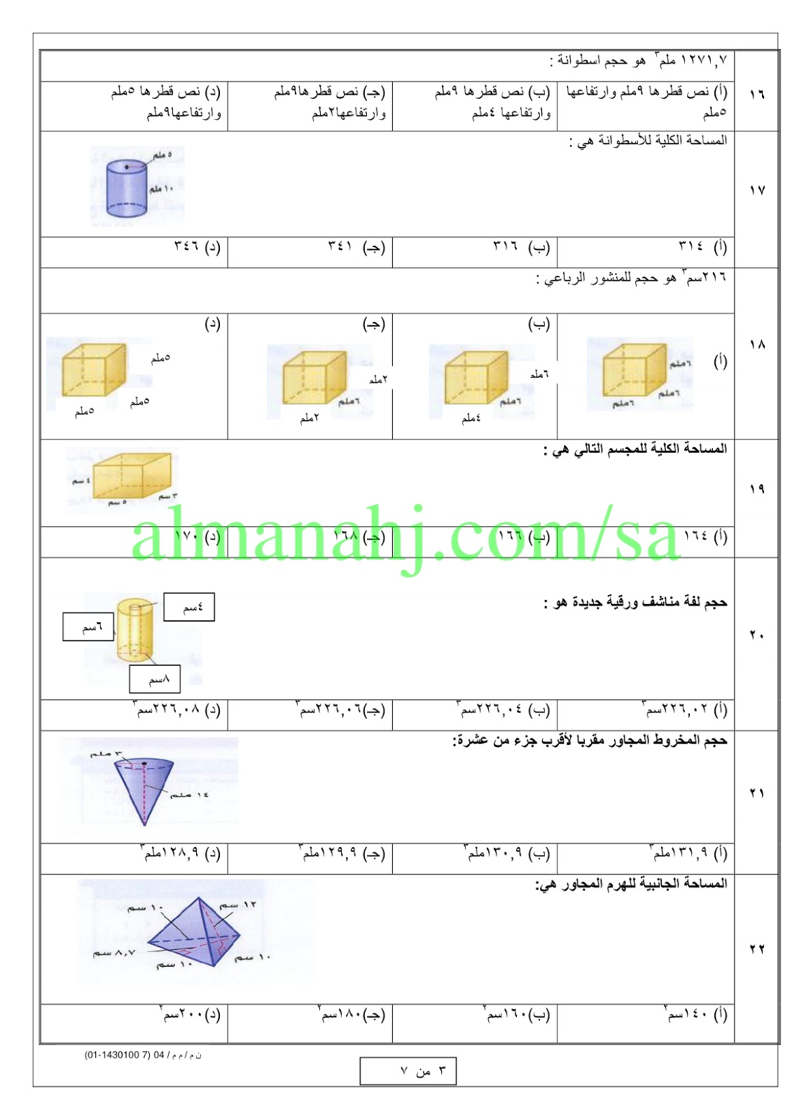 8. نموذج جديد لاختبار نهائي الدور الأول