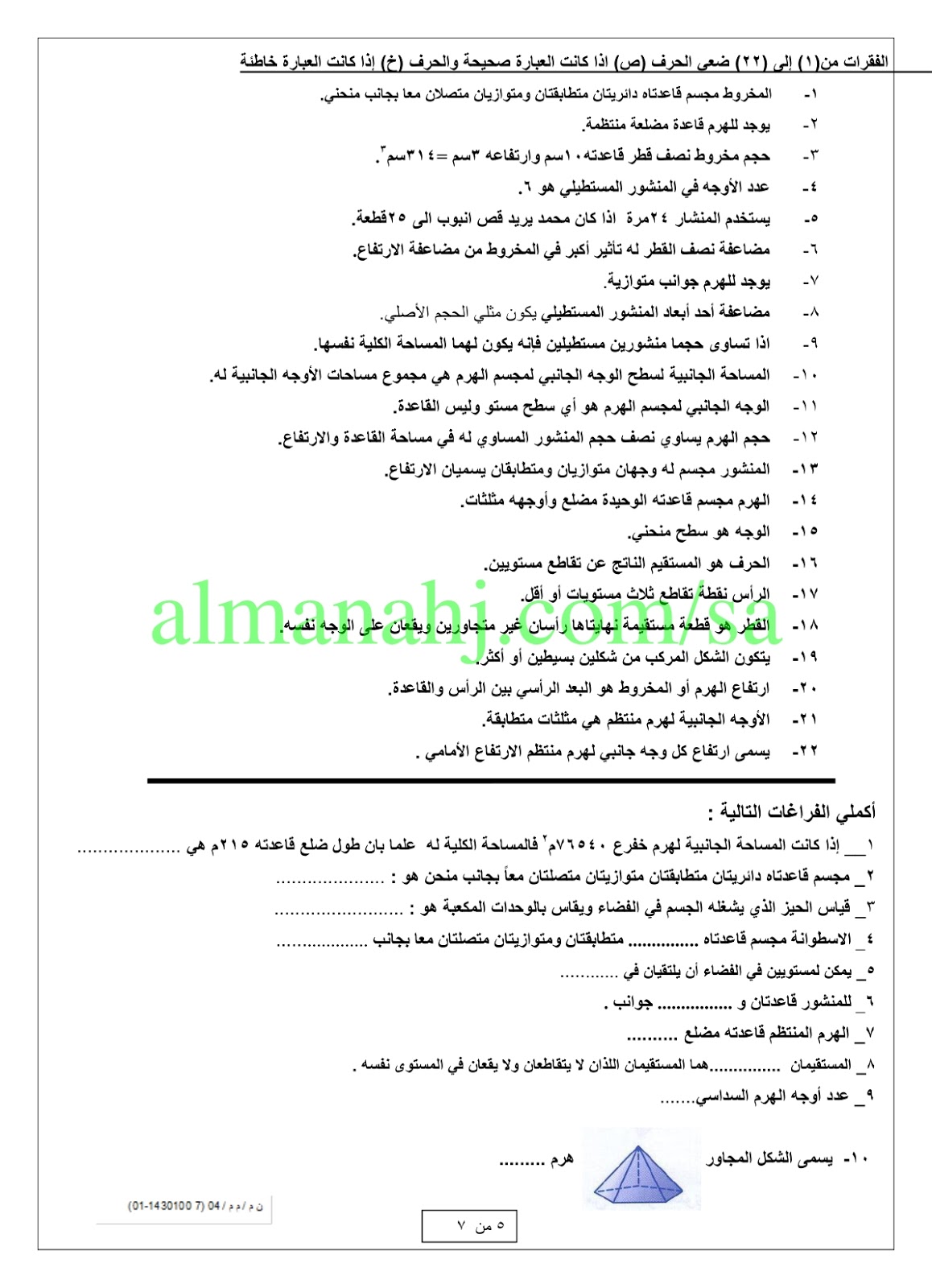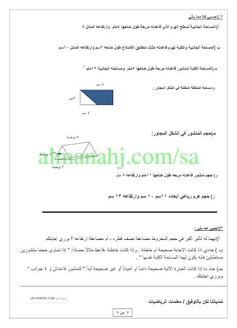 5. رياضيات, الفصل الأول, 1447_1448, نموذج اختبار فصل الأعداد الحقيقية و نظرية فيثاغورس