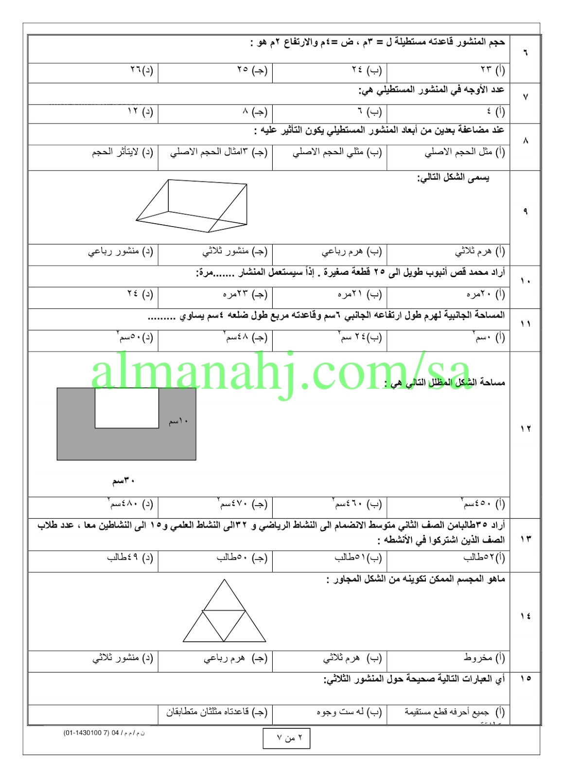 إليكم ملف هام يتضمن بنك اسئلة من مادة الرياضيات للصف الثاني المتوسط للفصل الدراسي الثاني وفق المنهاج السعودي