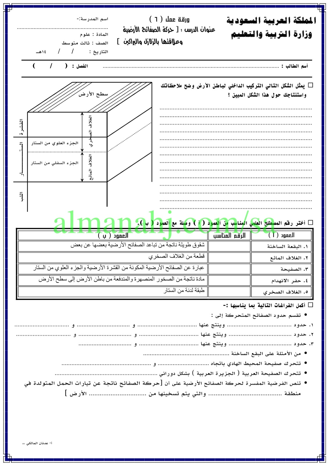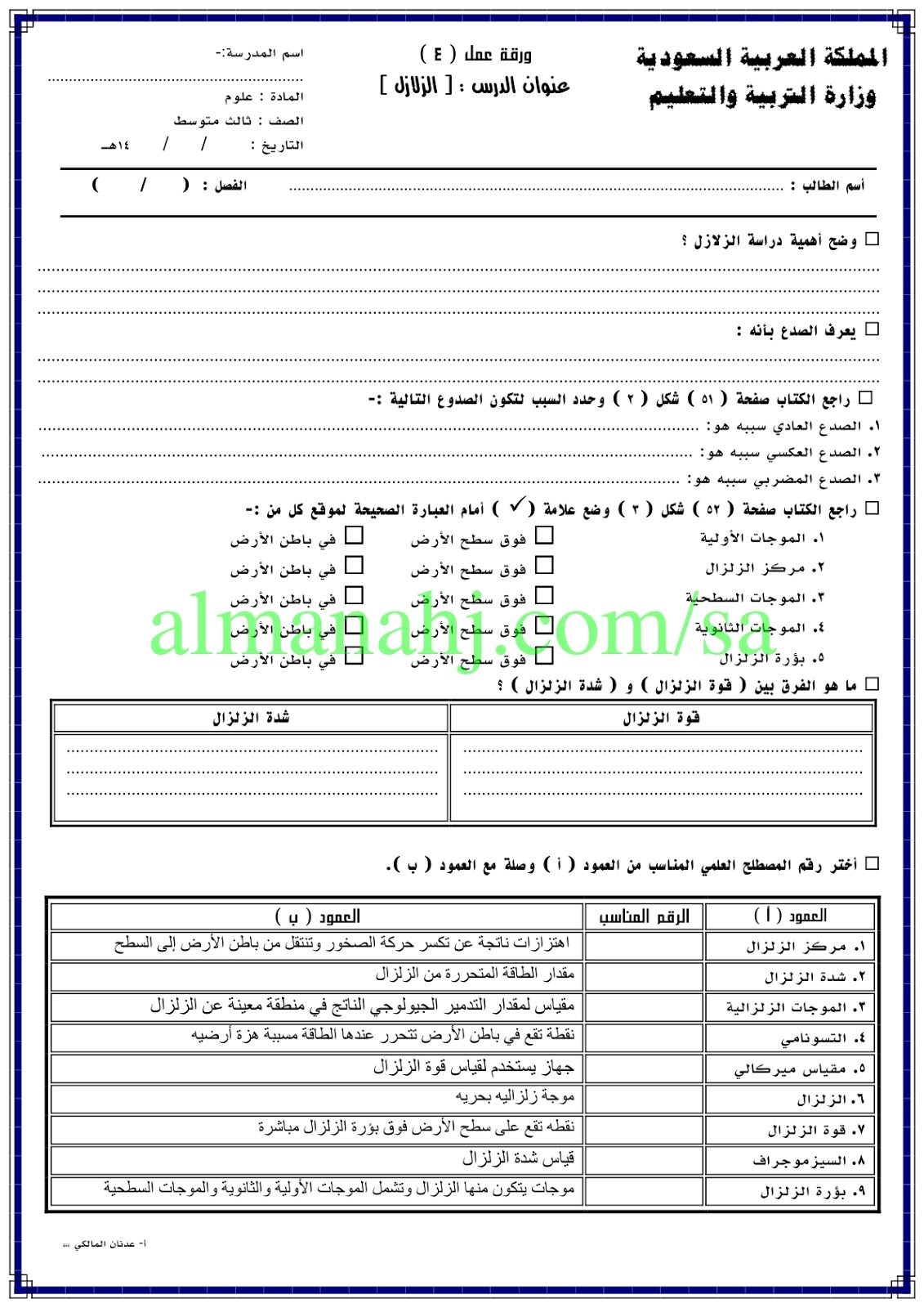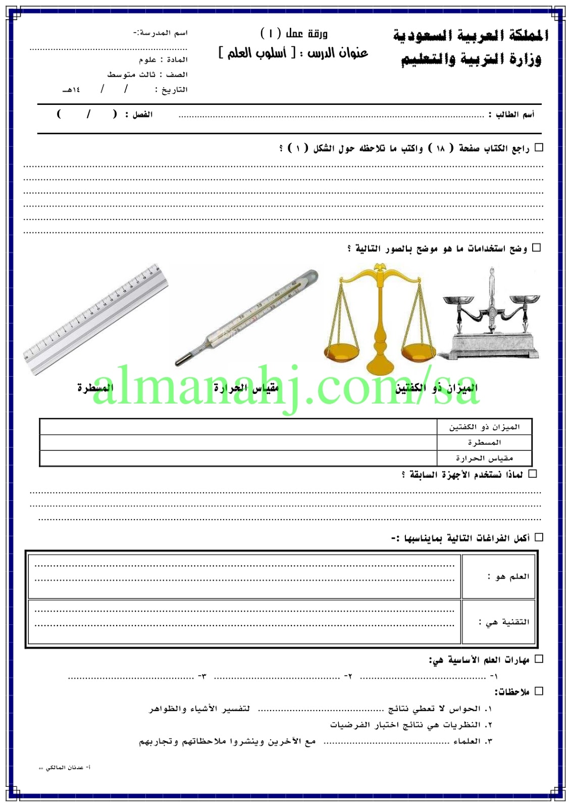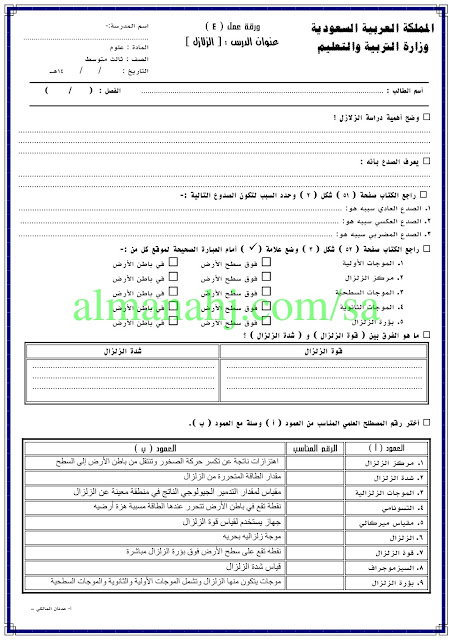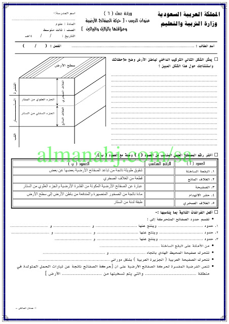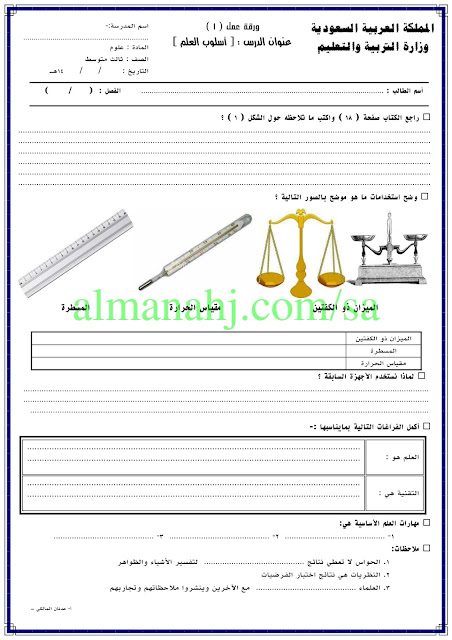 إليكم ملف هام يتضمن اوراق عمل في مادة العلوم للصف الثالث المتوسط وفق المنهاج السعودي