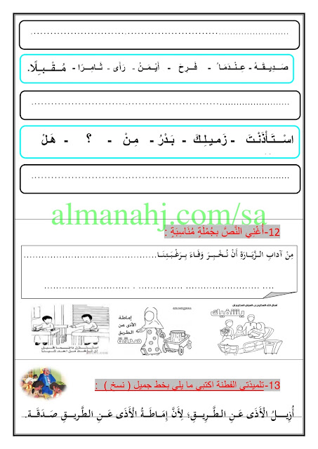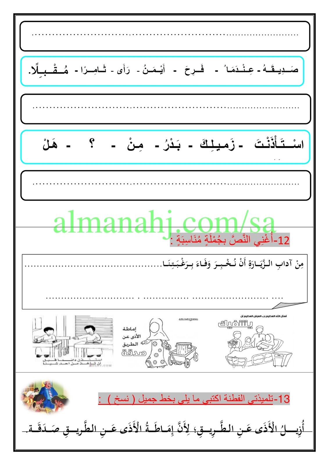 5. أوراق عمل الدرس الثاني إماطة الأذى عن الطريق