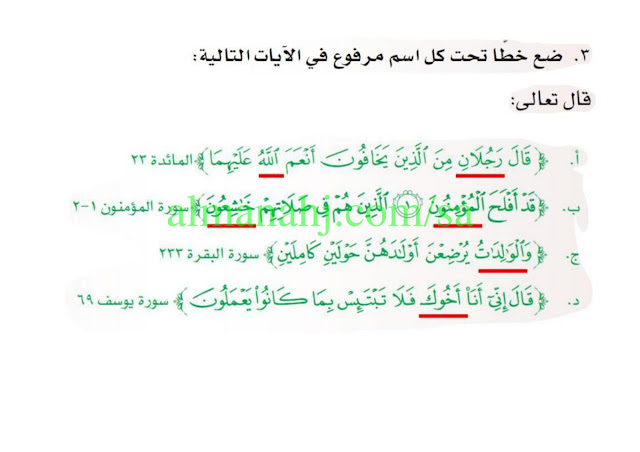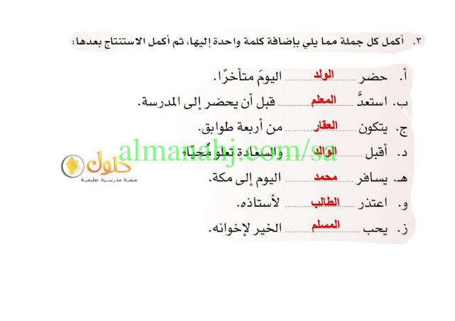 11. الصف الثالث المتوسط, لغة عربية, نموذج حل أسئلة التدريبات اللغوية